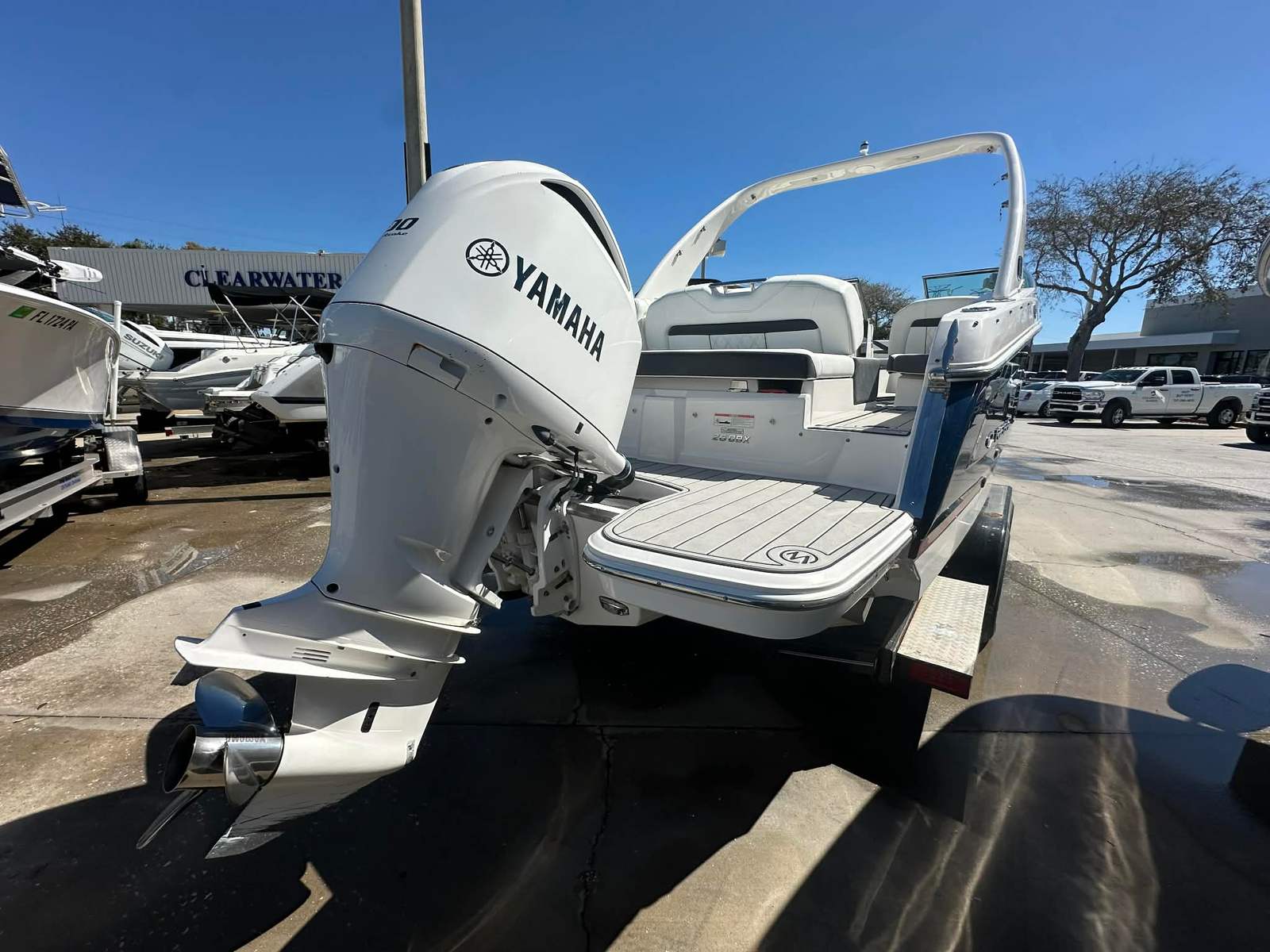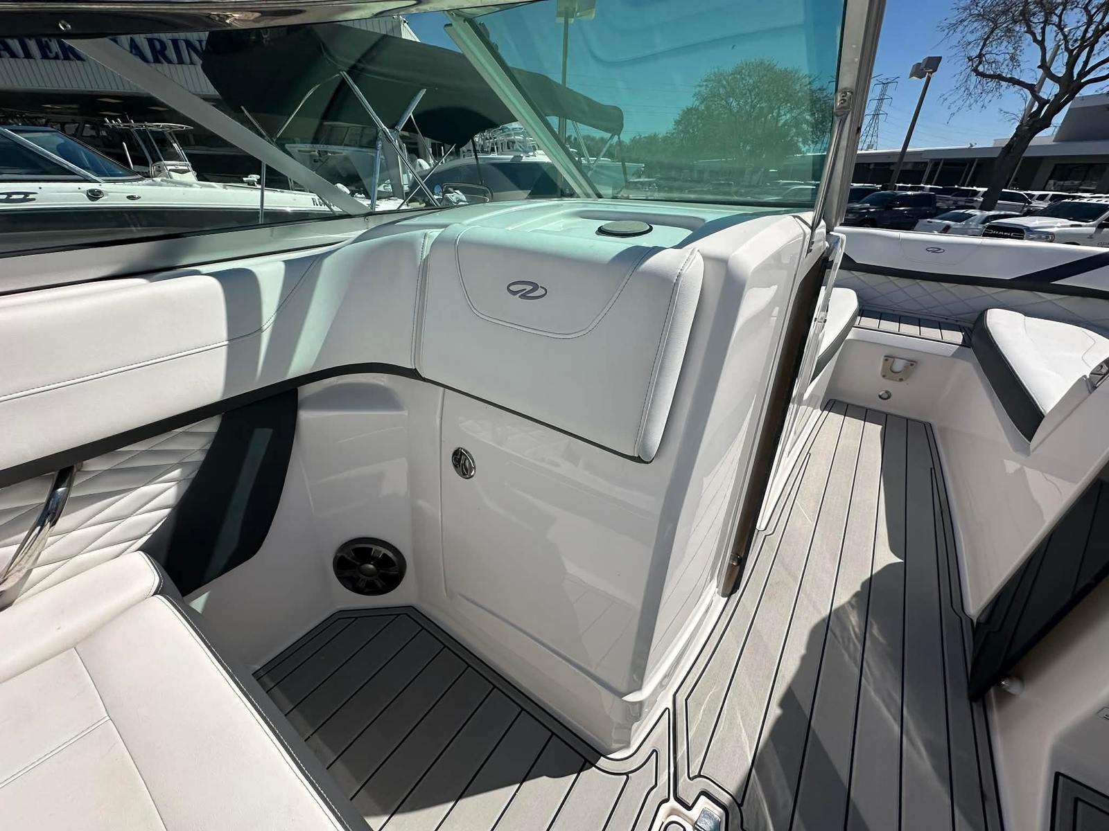 The Crownline E26XS is packed with features that enhance your boating experience. Its spacious 26-foot layout provides ample room for family and friends, while the center console design ensures easy movement throughout the boat. The ergonomic helm is thoughtfully arranged for intuitive control, allowing you to navigate with ease and precision. The boat’s durable construction and high-quality materials reflect Crownline’s commitment to excellence, ensuring lasting value and enjoyment.Special features of the E26XS include a versatile deck layout that is perfect for both relaxation and activity. The open bow area invites sunbathing and socializing, while the center console configuration provides excellent visibility and access to all areas of the boat. The generous storage compartments are ideal for stowing gear, water toys, and fishing equipment, keeping the deck clutter-free and organized. The E26XS’s innovative design also makes it easy to customize for your preferred activities, whether you’re setting up for a day of fishing or preparing for a sunset cruise.