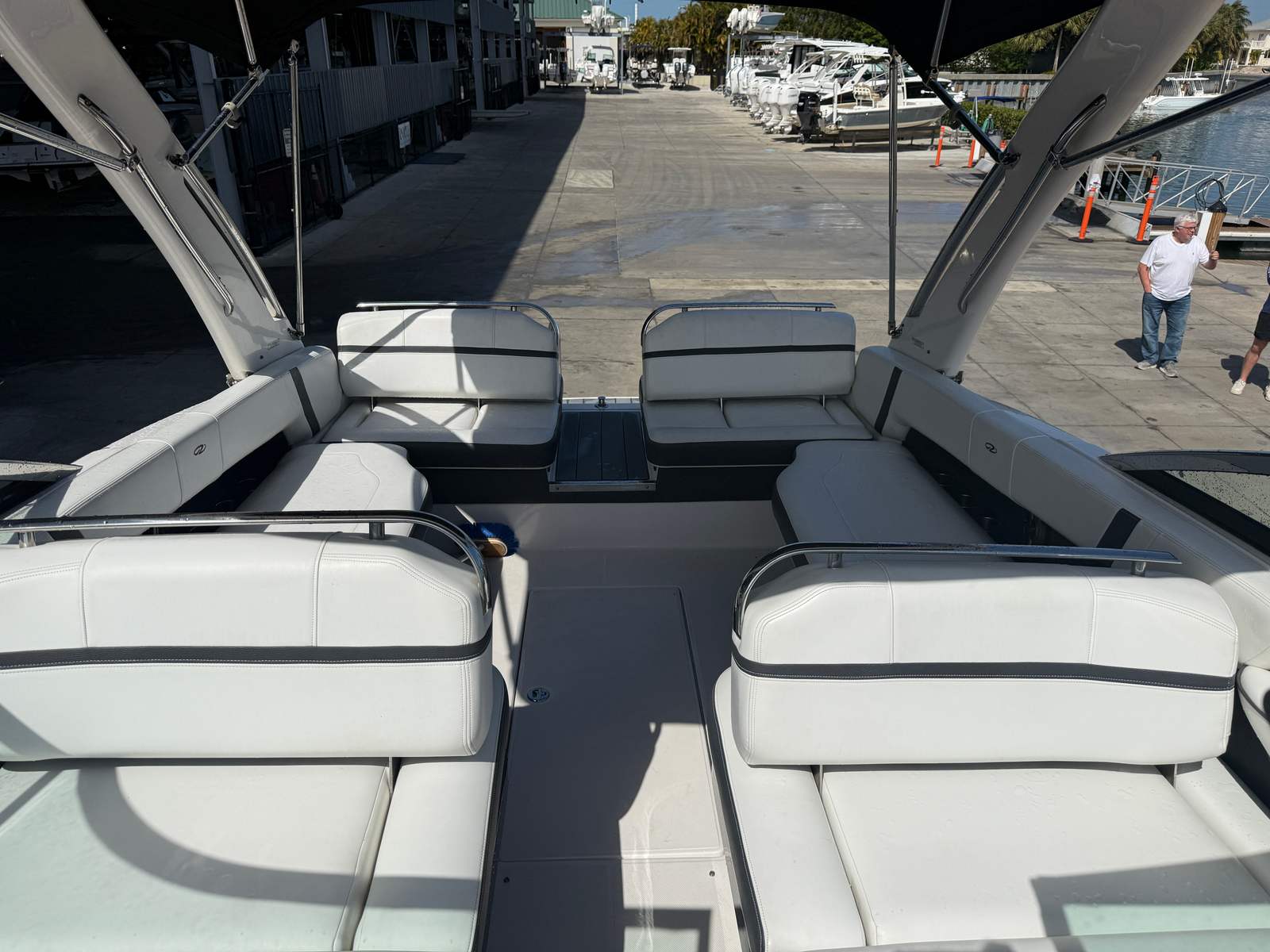 Under the hood, the Regal 2800 Bowrider is powered by a single engine boasting 380 horsepower. With only 180 engine hours, this vessel offers plenty of life and reliable performance for years to come. The powerful engine ensures smooth acceleration, responsive handling, and the ability to reach exhilarating speeds, making it perfect for watersports, cruising, or simply enjoying the thrill of the open water. The Regal 2800’s advanced hull design enhances stability and efficiency, providing a comfortable ride even in choppy conditions.