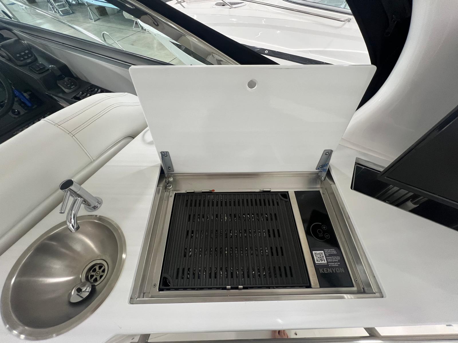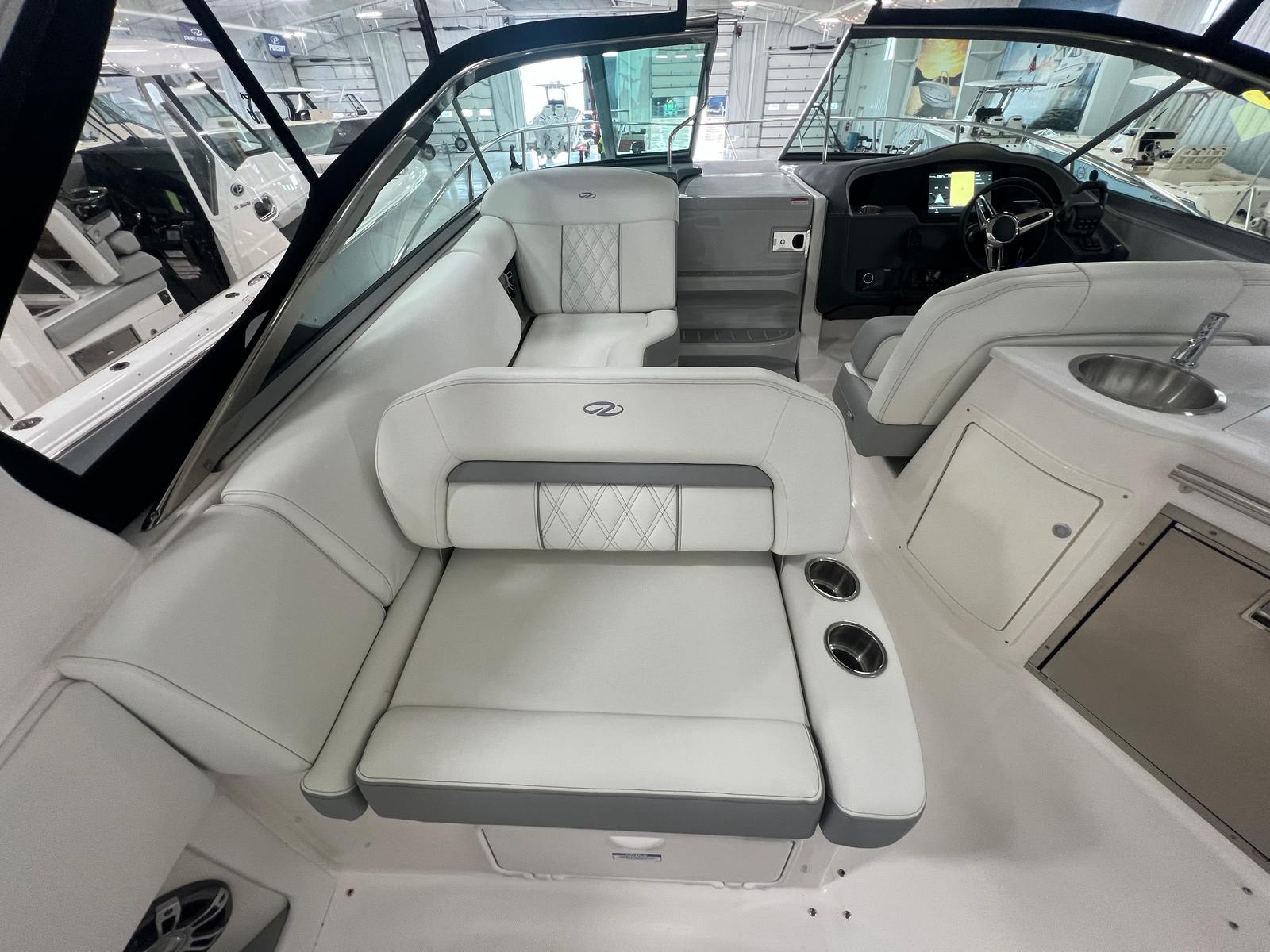 The Regal 33 Express is designed with practicality in mind, making ownership easy and enjoyable. The anchor windlass with all-chain operation streamlines the anchoring process, saving time and effort when you want to stop and enjoy the scenery. The cockpit refrigerator ensures your favorite beverages and snacks are always within reach, perfect for long days on the water.The companionway screen door enhances ventilation while maintaining comfort, and the cockpit seagrass mat provides a soft, non-slip surface for added safety. The boat’s length and layout offer generous storage options for gear, supplies, and personal items, helping you stay organized and prepared for any adventure.Docking is simplified by the cruiser’s responsive handling and dual-engine configuration, allowing for precise movements in tight spaces. The fuel-efficient design ensures you can spend more time exploring and less time refueling, making every trip more enjoyable and cost-effective.