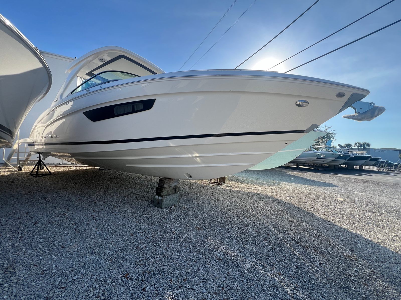 Practicality meets elegance in the Regal 33 OBX. The ample storage options throughout the boat make it easy to stow gear, water toys, and personal items, keeping the deck clutter-free and organized. The swim platform and transom door provide seamless access to the water, making it simple to enjoy swimming, snorkeling, or launching paddleboards.Docking is made effortless thanks to the bow thruster and swim platform cleats, allowing you to maneuver with confidence in marinas or tight spaces. The indicators for trim tabs help you maintain optimal performance and fuel efficiency, ensuring that every outing is as smooth and economical as possible. The electric toilet with pump out fittings adds a level of convenience that makes longer trips more comfortable for everyone on board.