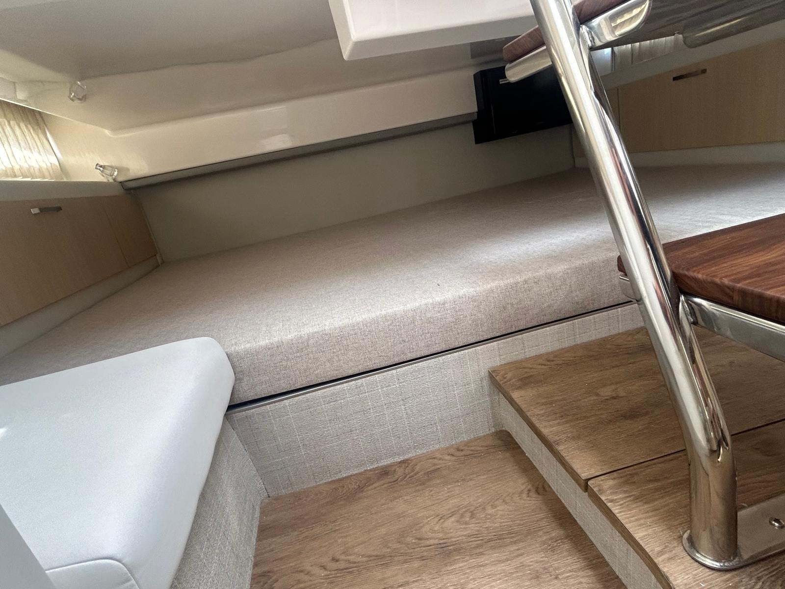 The Regal 33 SAV is as practical as it is luxurious. Storage solutions throughout the boat keep your gear organized and accessible, while the swim platform cleats and fender clips simplify docking and mooring. The anchor windlass system adds convenience when stopping at your favorite coves or beaches, and the bow thruster ensures stress-free maneuvering in crowded marinas.Fuel efficiency and reliable performance mean you can spend more time enjoying the water and less time worrying about maintenance. The manual sunshade system allows you to adapt to changing weather conditions, providing shade when needed and open skies when desired. With the port light for cabin, natural illumination enhances the interior, making overnight stays or extended trips more comfortable.