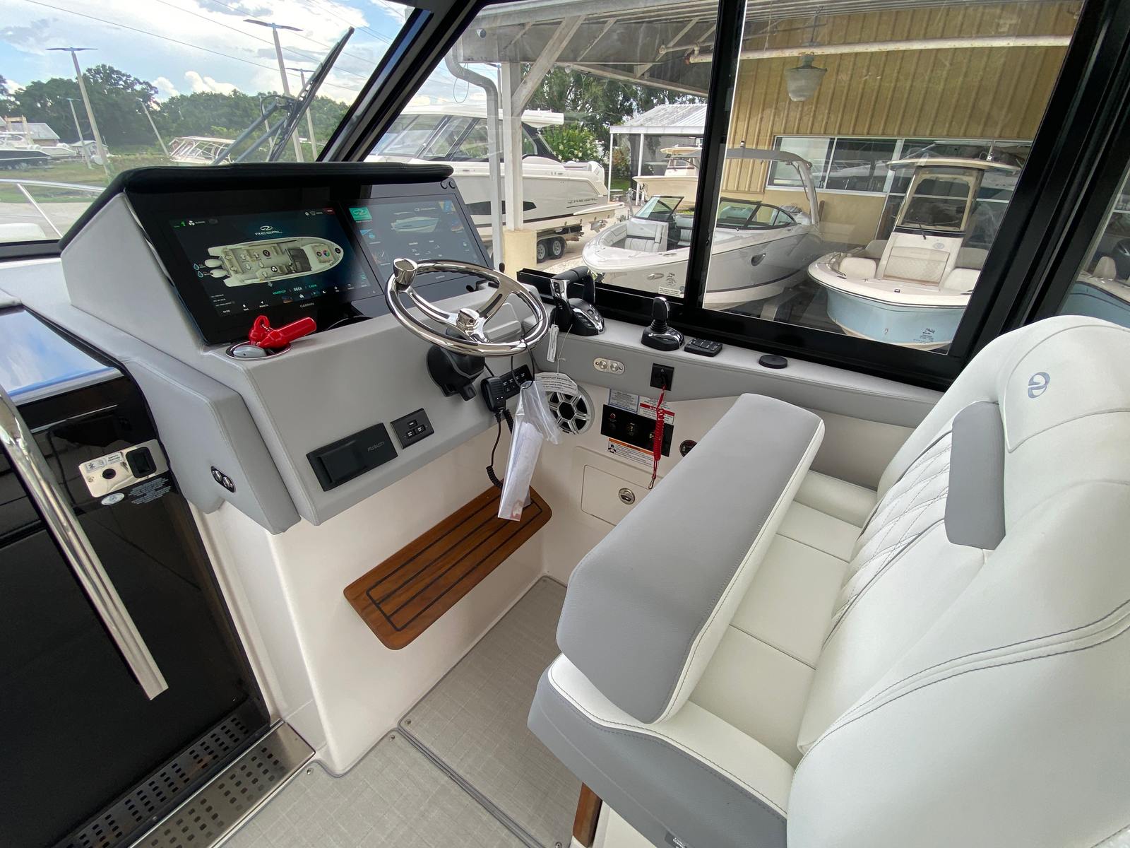 The 2026 Regal 36 XO is a new yacht that measures an impressive 37.25 feet in length, offering ample space for relaxation, entertainment, and adventure. With its sleek Mediterranean Blue hull and matching canvas, this yacht boasts a striking presence on the water, turning heads wherever it goes. The toasted oak salon floor adds a touch of warmth and elegance to the interior, creating a welcoming atmosphere for guests and owners alike. Regal’s commitment to quality and innovation is evident in every detail, making this yacht a standout choice for discerning buyers looking for a Regal boat for sale.