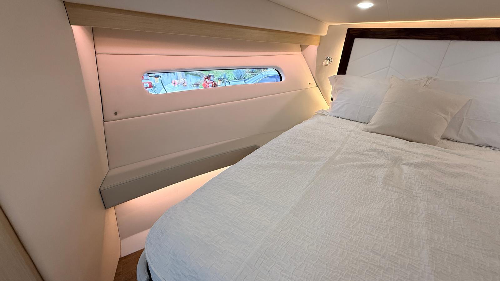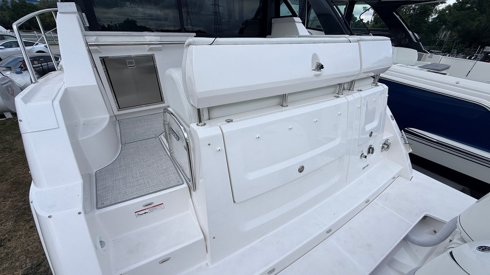 The Regal 38 XO is designed with practical ownership in mind. Its triple engine setup offers reliable performance and easy docking, making it a breeze to maneuver in tight spaces or busy marinas. The yacht’s efficient engines contribute to better fuel economy, allowing you to spend more time exploring and less time refueling. The versatile canvas options provide protection from the elements, ensuring your comfort in various weather conditions. Ample storage throughout the yacht makes it simple to stow gear, supplies, and personal items, keeping the living spaces organized and clutter-free. The combination of style, functionality, and ease of use makes this Regal boat for sale a smart investment for both seasoned boaters and newcomers alike.