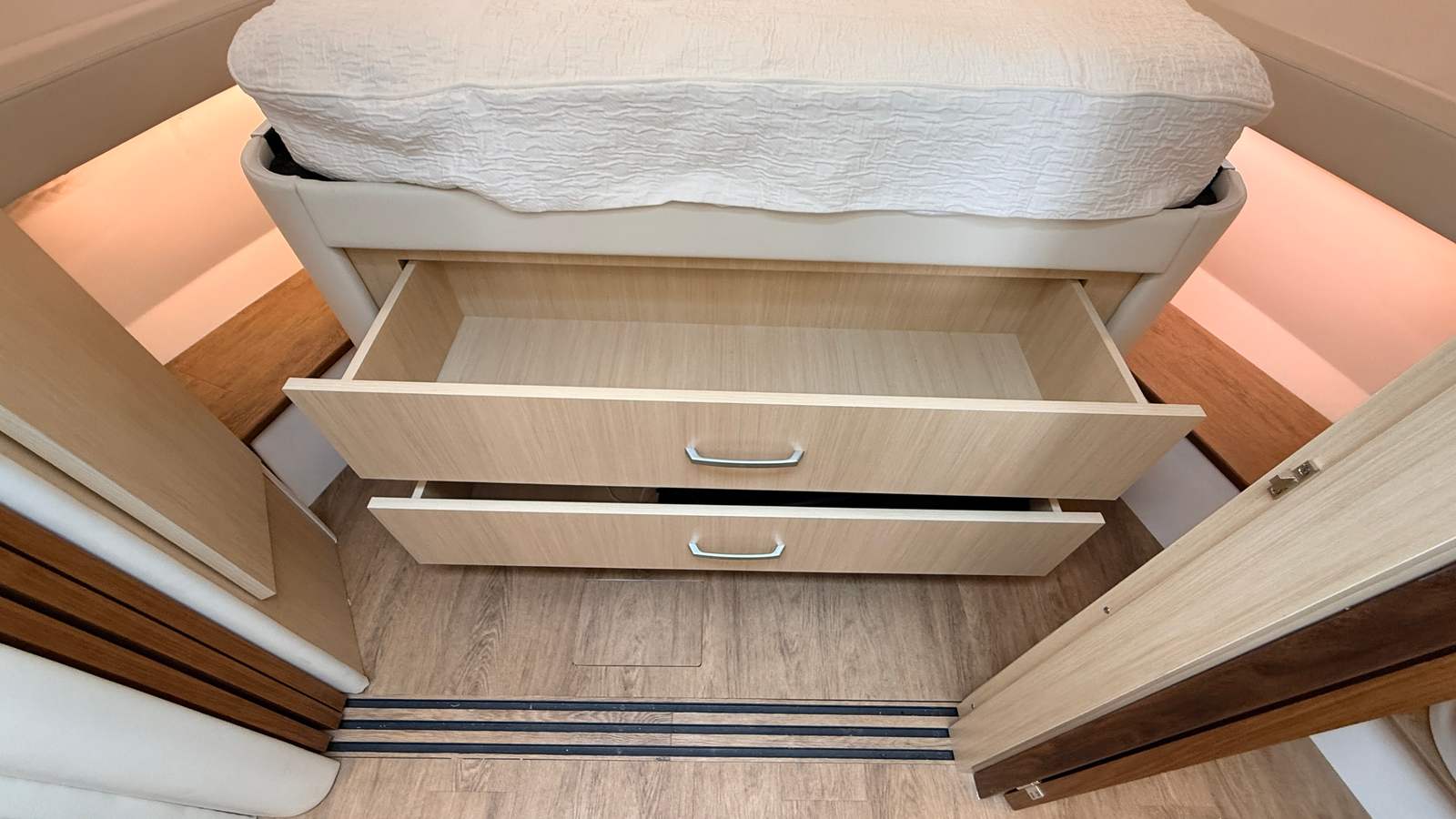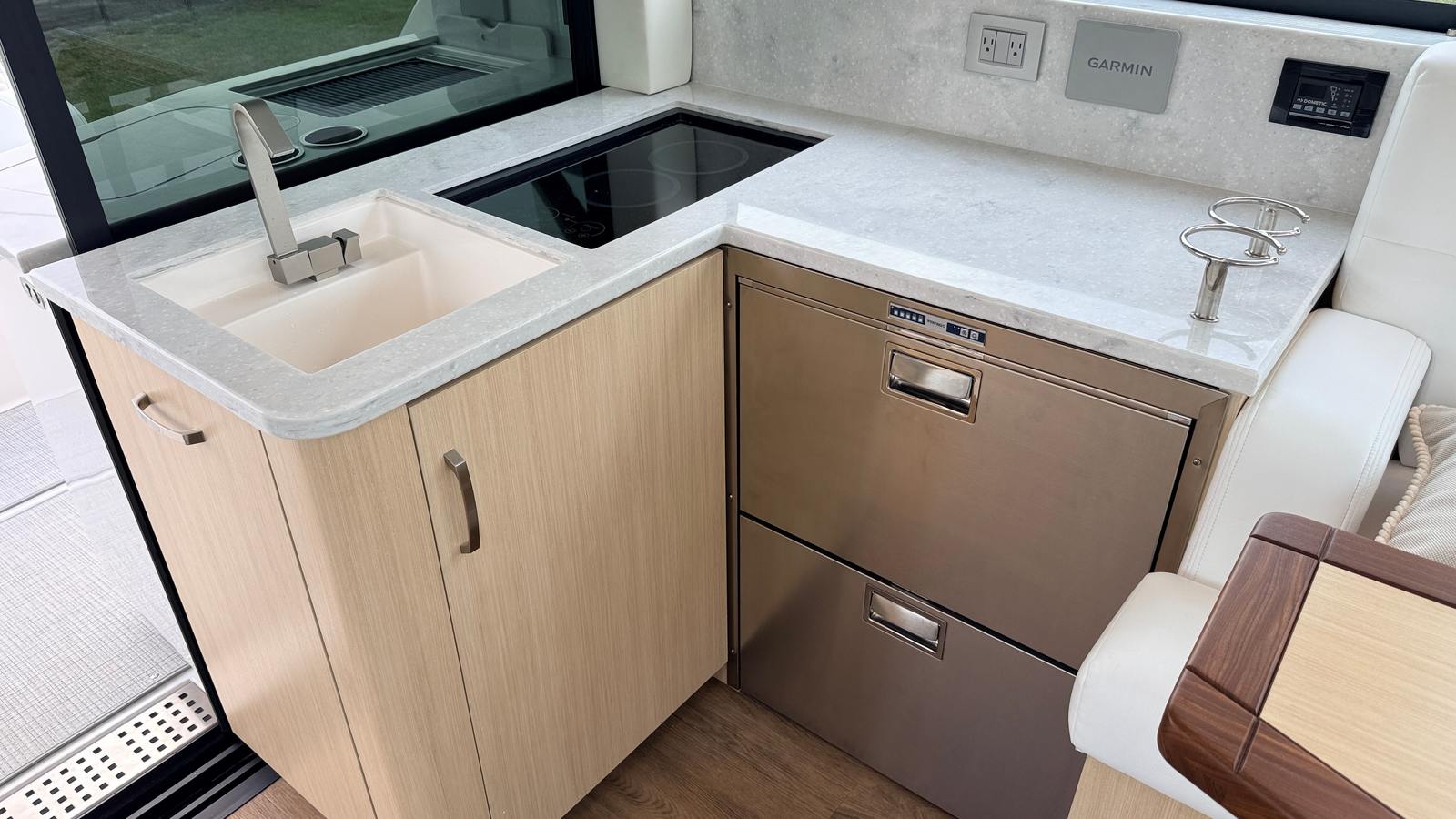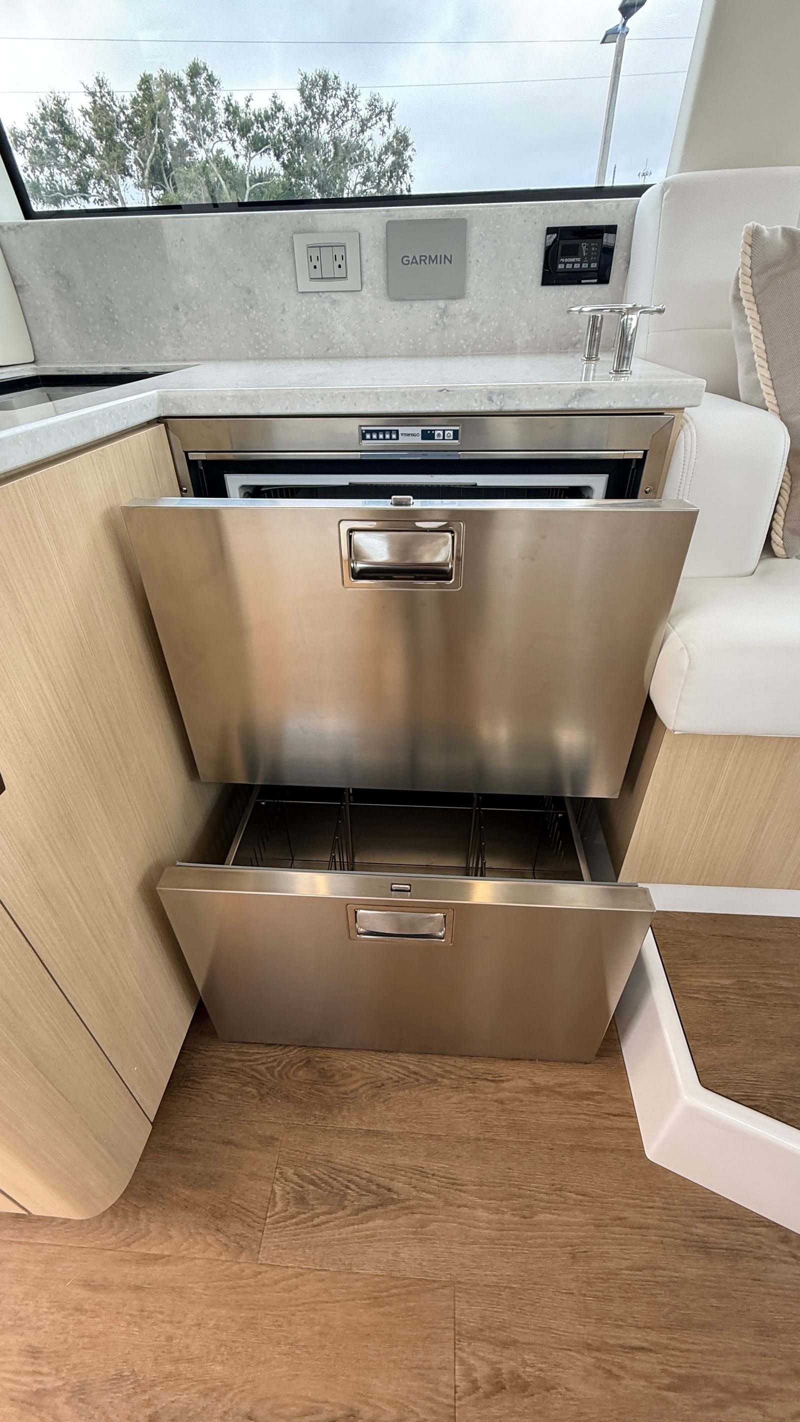 Power and precision come together in the Regal 38 XO, thanks to its triple Yamaha F350NSB2 engines. With a combined engine horsepower of 1,050, this yacht delivers exhilarating speed and smooth handling, whether you’re cruising along the coastline or heading out for a weekend getaway. The triple engine configuration provides enhanced maneuverability and reliability, ensuring a confident and enjoyable ride in various water conditions. The advanced Yamaha engines are renowned for their efficiency and quiet operation, allowing you to focus on the journey ahead.