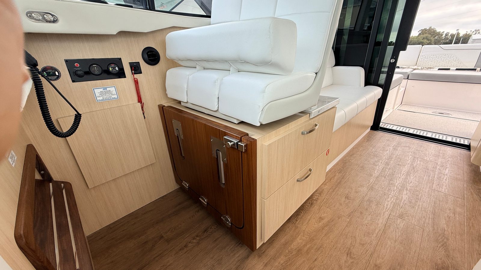 The Regal 38 XO is packed with special features that set it apart from other yacht boats for sale. The hull boasts a striking Tahiti Beach White color, complemented by a Mediterranean Blue bootstripe and matching bottom color. The interior is finished in Titanium, offering a modern and inviting atmosphere for you and your guests. The absence of bottom paint highlights the yacht’s fresh, new condition, while the aft cockpit canvas options, including the transom seat cover and Palm Beach enclosure, provide versatile protection and comfort. The windshield privacy cover and Mediterranean Blue canvas add both style and functionality, ensuring you’re prepared for any weather or occasion.