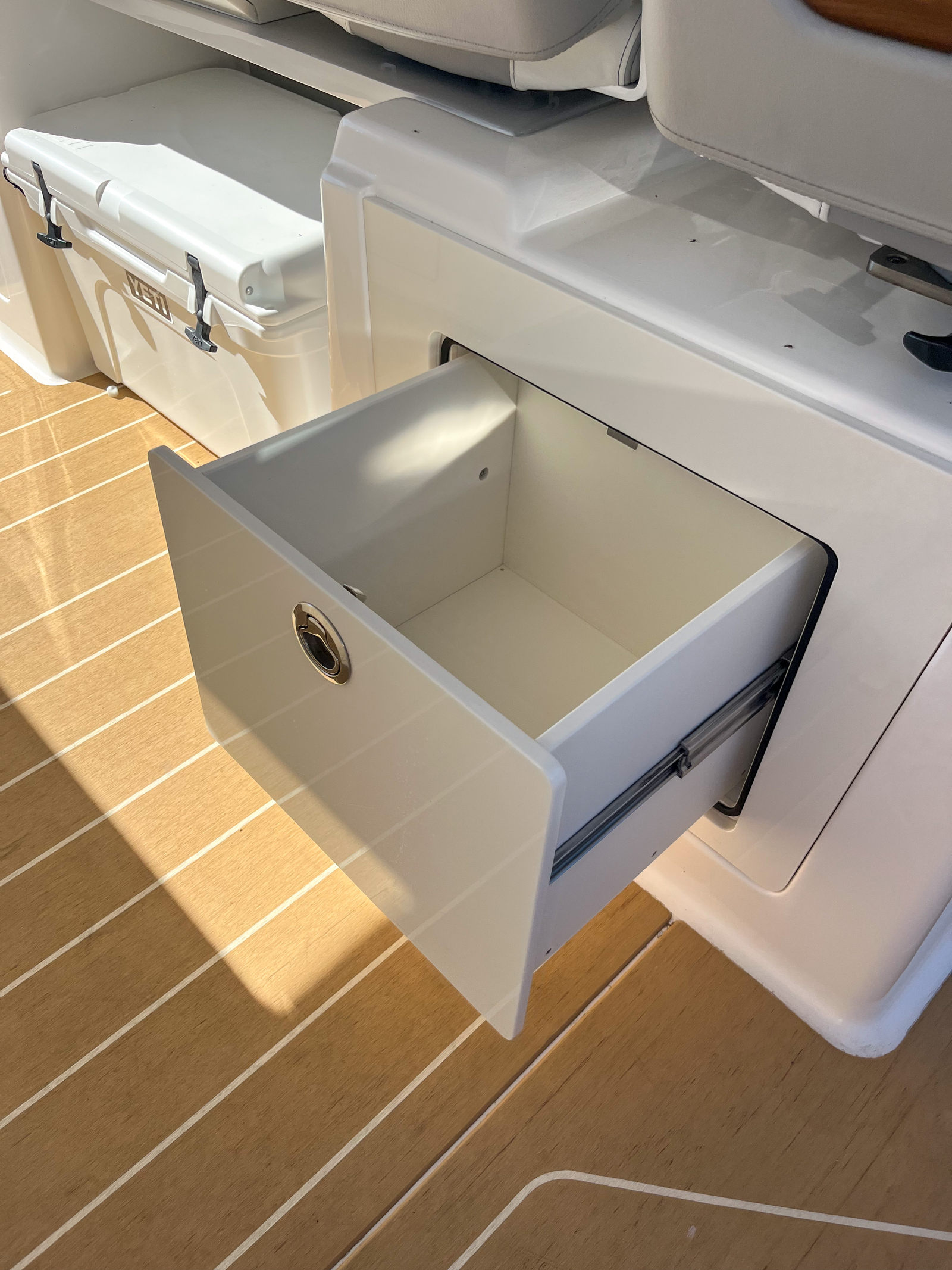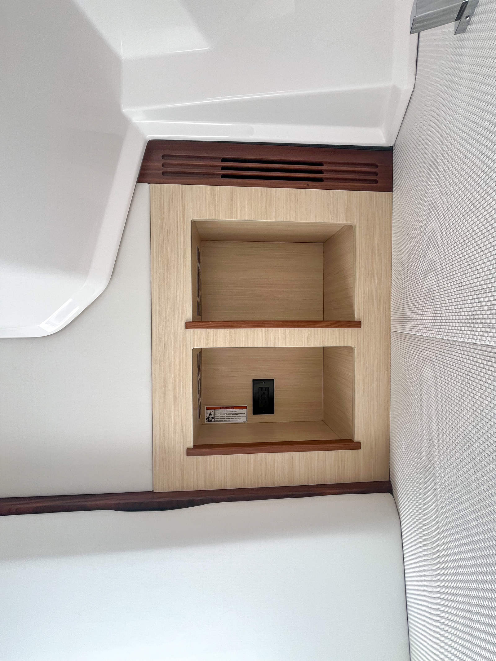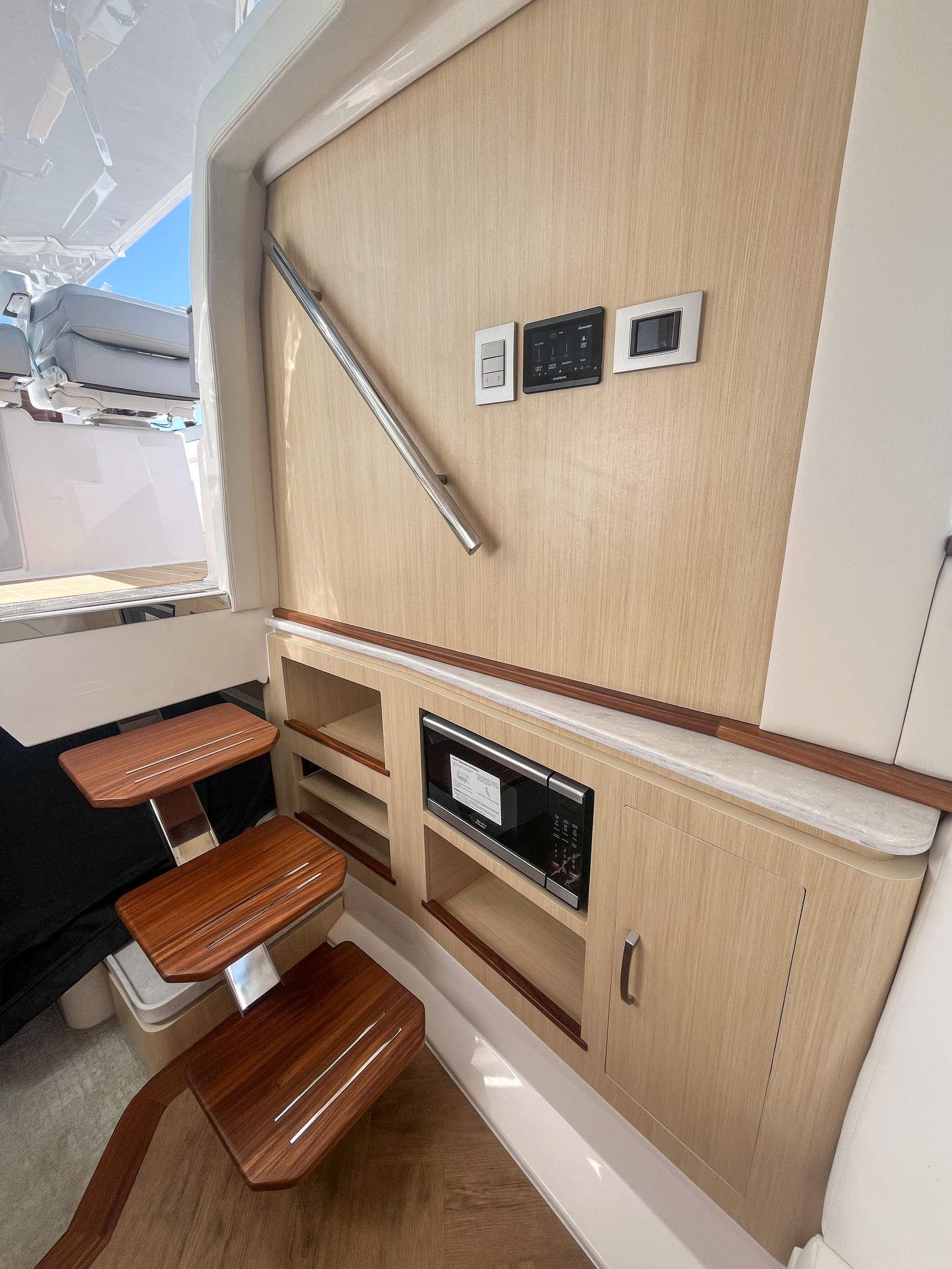 The Regal 43 SAV is as practical as it is luxurious. The ample storage options throughout the yacht make it easy to stow gear, supplies, and personal items, keeping the living spaces uncluttered and organized. Docking is simplified by the yacht’s responsive handling and advanced controls, allowing you to maneuver with ease in tight marinas or busy harbors. Fuel efficiency is enhanced by the yacht’s modern engine design, allowing you to spend more time on the water and less time at the fuel dock. The integrated refrigerator and convenient restroom facilities make it possible to enjoy longer excursions without sacrificing comfort or convenience.