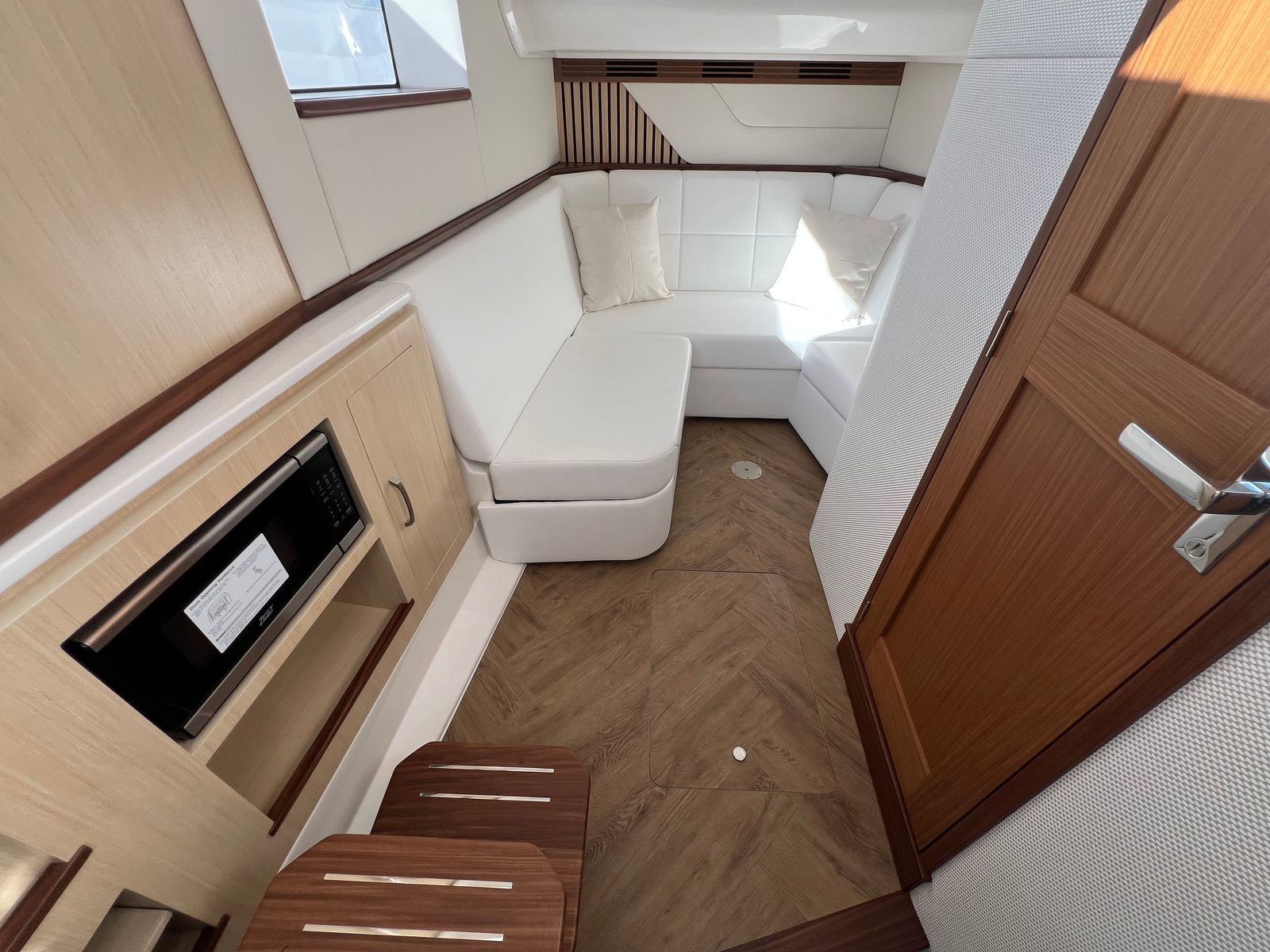 Beyond its luxurious amenities, the Regal 43 SAV is engineered for practical and convenient ownership. The bow thruster simplifies docking, allowing you to maneuver with confidence even in crowded marinas or challenging conditions. The bow boarding handle adds an extra layer of safety and ease, making it simple for everyone to get on and off the yacht.The diesel generator ensures you have all the power you need for extended stays on the water, supporting everything from air conditioning to entertainment systems. The white canvas offers protection from the sun and rain, while the ultimate underwater lighting enhances visibility and safety during nighttime excursions. With its spacious layout and smart storage solutions, this yacht makes it easy to bring along all your essentials for a day trip or a longer adventure.