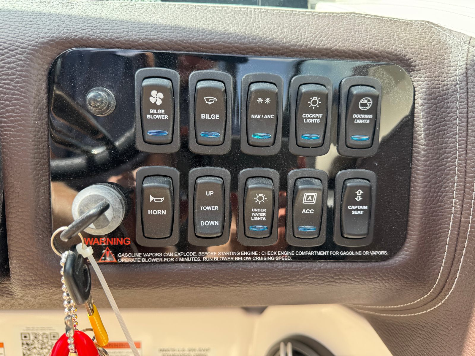 At the heart of the Regal LS4 is a robust Volvo V8 350 EVC2 DP CAT engine, delivering an impressive 350 horsepower. With just one engine hour, this boat is essentially brand new and primed for adventure. The advanced engine technology ensures smooth acceleration, responsive handling, and efficient fuel consumption, making every ride exhilarating yet economical. The dual propeller drive system enhances maneuverability, allowing you to navigate tight marinas or open waters with confidence. Whether you are towing water toys, cruising at high speeds, or simply enjoying a leisurely ride, the LS4’s performance capabilities are sure to impress.
