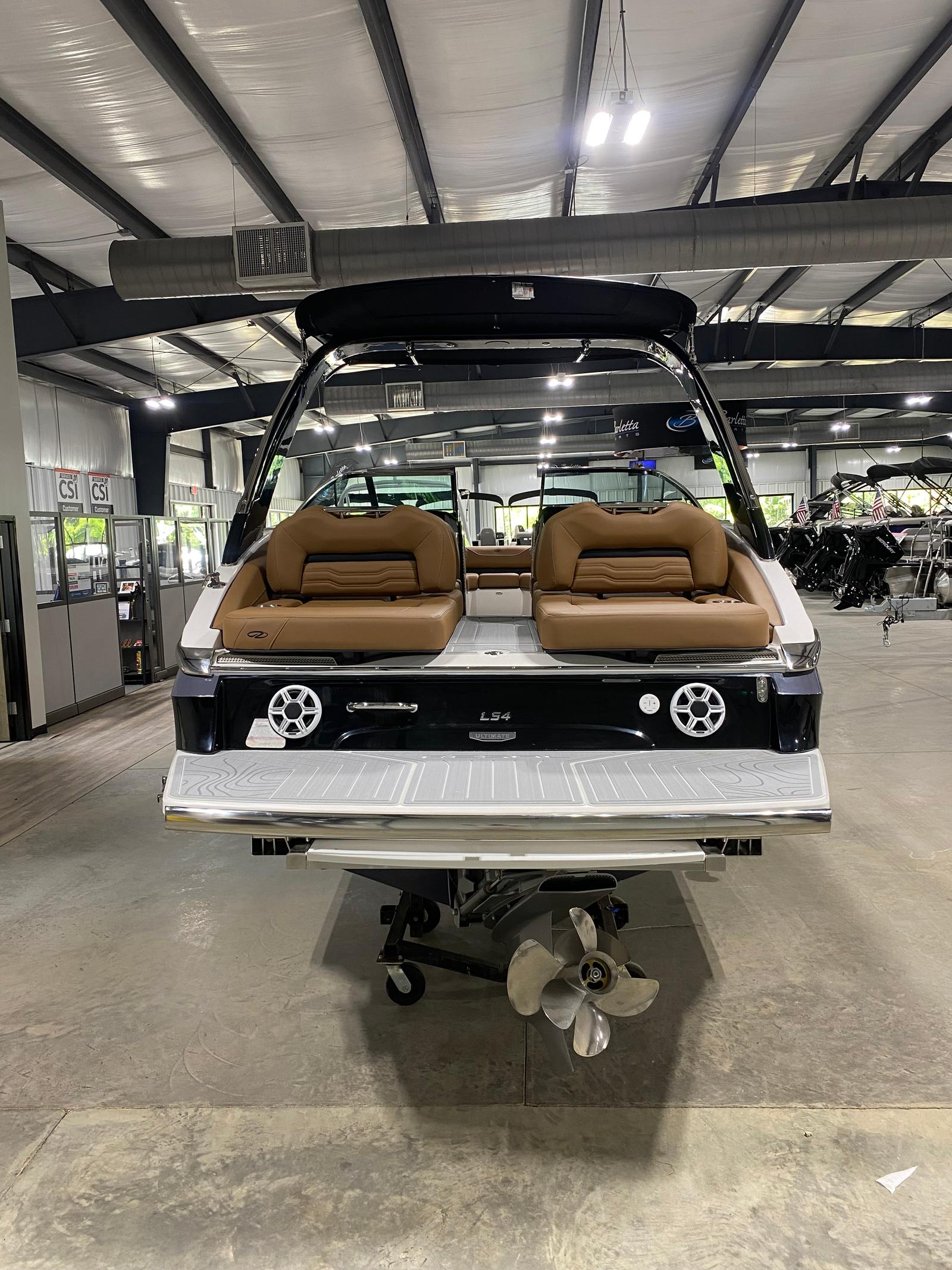 At the heart of the Regal LS4 is a single, robust engine delivering an exhilarating 350 horsepower. This powerful setup ensures smooth acceleration, responsive handling, and the ability to reach impressive speeds, whether you’re cruising along the shoreline or towing water sports enthusiasts. The LS4’s advanced hull design enhances stability and efficiency, providing a comfortable ride even in choppier waters. With this level of performance, the Regal LS4 is perfectly suited for both leisurely cruises and adrenaline-pumping adventures.