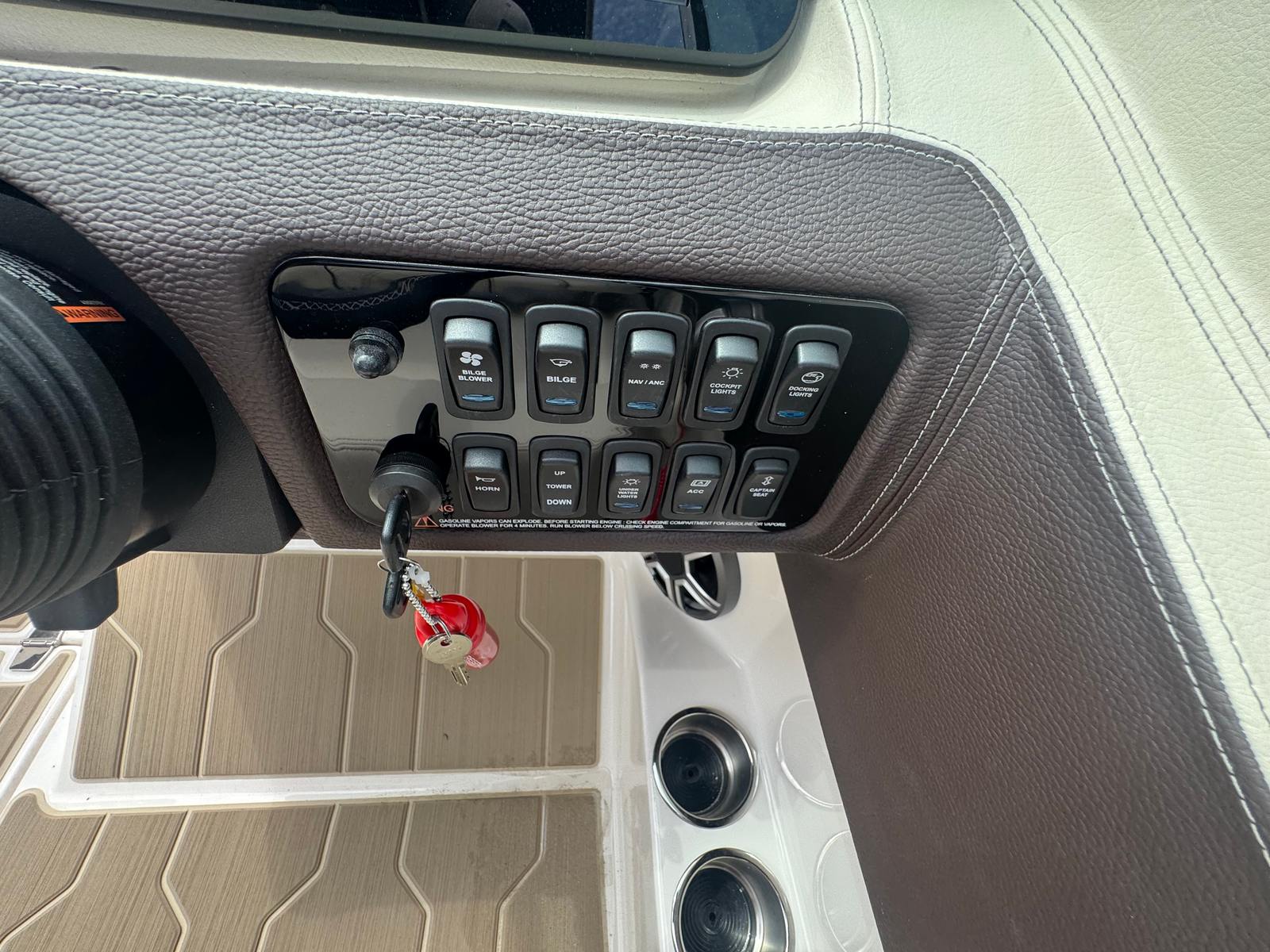 The Regal LS4 Bowrider is packed with premium features that elevate your boating experience. The hull’s Tahiti Beach White color and Black bottom not only enhance its visual appeal but also contribute to its durability and easy maintenance. Step aboard and you’ll be greeted by the River Rock interior, which combines comfort and elegance for a truly luxurious feel. The swim platform cover provides added protection and convenience, while the travel storage cover ensures your boat stays pristine during transport or storage.Enjoy superior traction and comfort with SeaDek on both the cockpit sole and swim platform, making movement around the boat safe and enjoyable. The dual battery switch with tray and cables, along with a battery charger, ensures reliable power management and peace of mind during extended outings. Docking lights add an extra layer of safety and convenience, making evening arrivals and departures effortless.