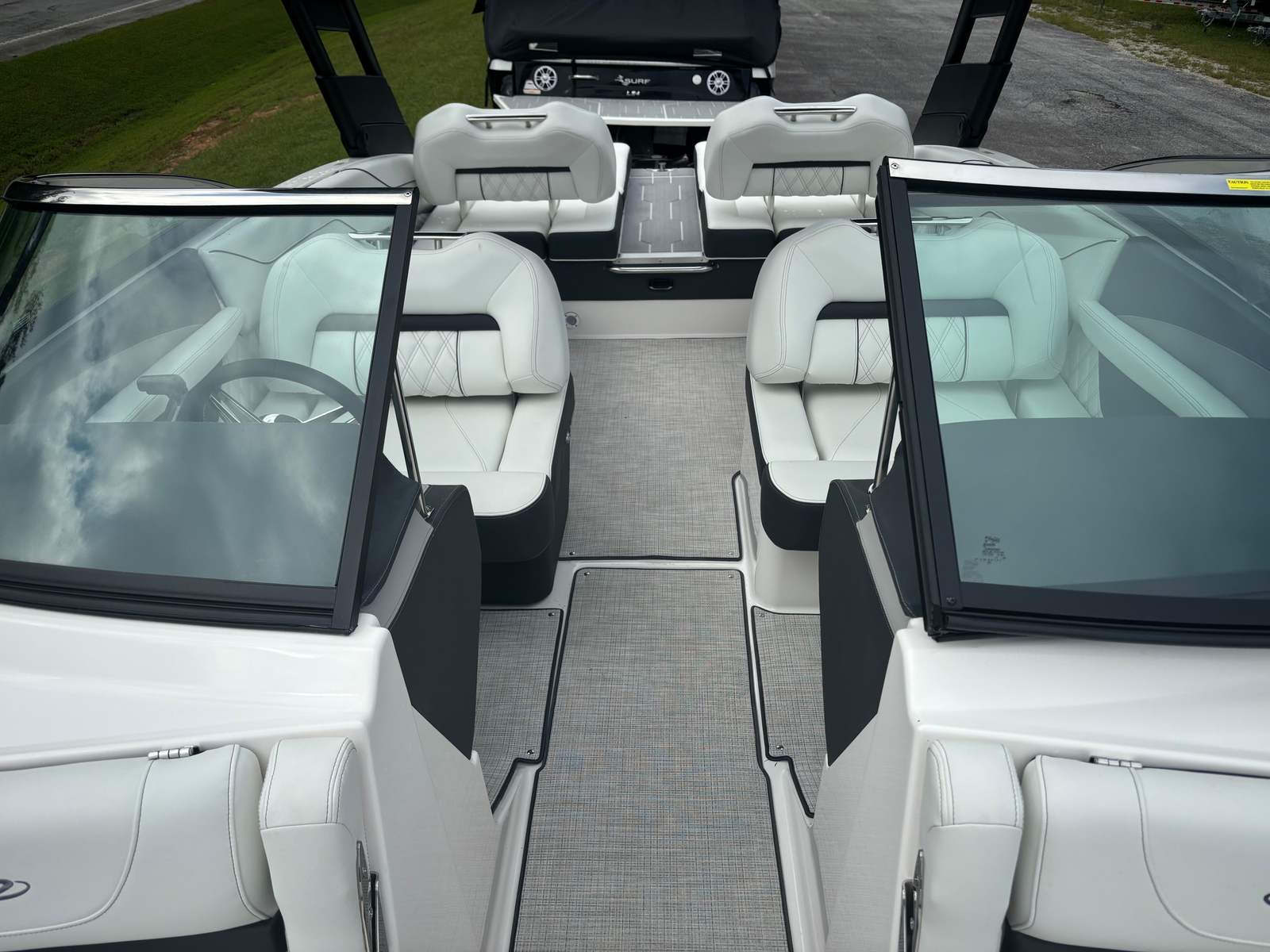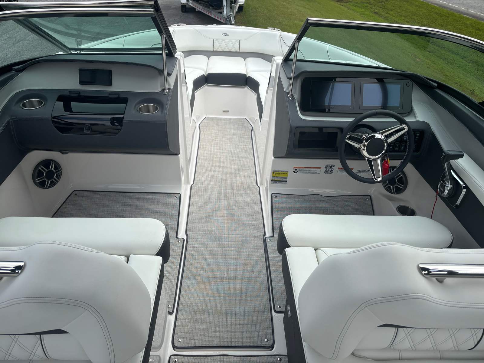 The Regal LS4 Bowrider is packed with premium features that elevate your boating experience. The Titanium and Graphite accents give the boat a contemporary, upscale look, while the Tahiti Beach White finish adds a touch of elegance and sophistication. The Cockpit Seagrass Mat offers a plush, comfortable surface underfoot, enhancing the overall ambiance and making every trip feel like a luxury escape.For added convenience, the LS4 is equipped with Fender Clips, making docking and mooring a breeze. The Dual Garmin 943 navigation system provides state-of-the-art technology for chart plotting and route planning, ensuring you stay on course with confidence. The PowerTower S2 in sleek black not only adds to the boat’s striking appearance but also offers practical benefits for watersports and storage.Show your patriotic spirit with the Stainless Steel Flag Pole and U.S. Flag, a stylish touch that sets your boat apart. The Stereo Performance & Lighting Package transforms the LS4 into the ultimate entertainment hub, allowing you to set the mood with vibrant lighting and crystal-clear sound for every occasion.