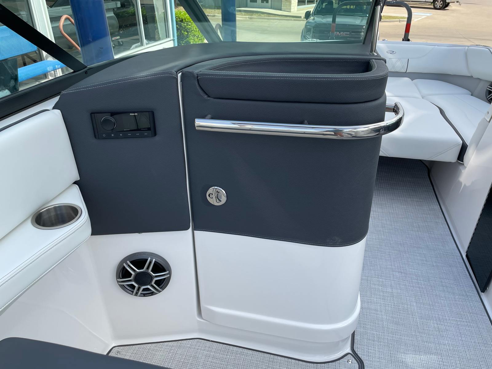 The 2026 Regal LS6 Surf is loaded with features designed to enhance your boating experience. The hull’s Tahiti Beach White color, paired with the Newport Blue bootstripe and Graphite bottom, ensures you will turn heads at every marina. The Titanium interior offers a luxurious and durable seating area, perfect for lounging or entertaining. A travel storage cover keeps your boat protected when not in use, while the cockpit seagrass mat adds a touch of comfort and style underfoot. The SeaDek swim platform provides a safe and comfortable area for swimmers and surfers to enter and exit the water with ease. For added convenience and peace of mind, the dual battery switch with tray and cables, along with a battery charger, ensures reliable power for all your adventures.