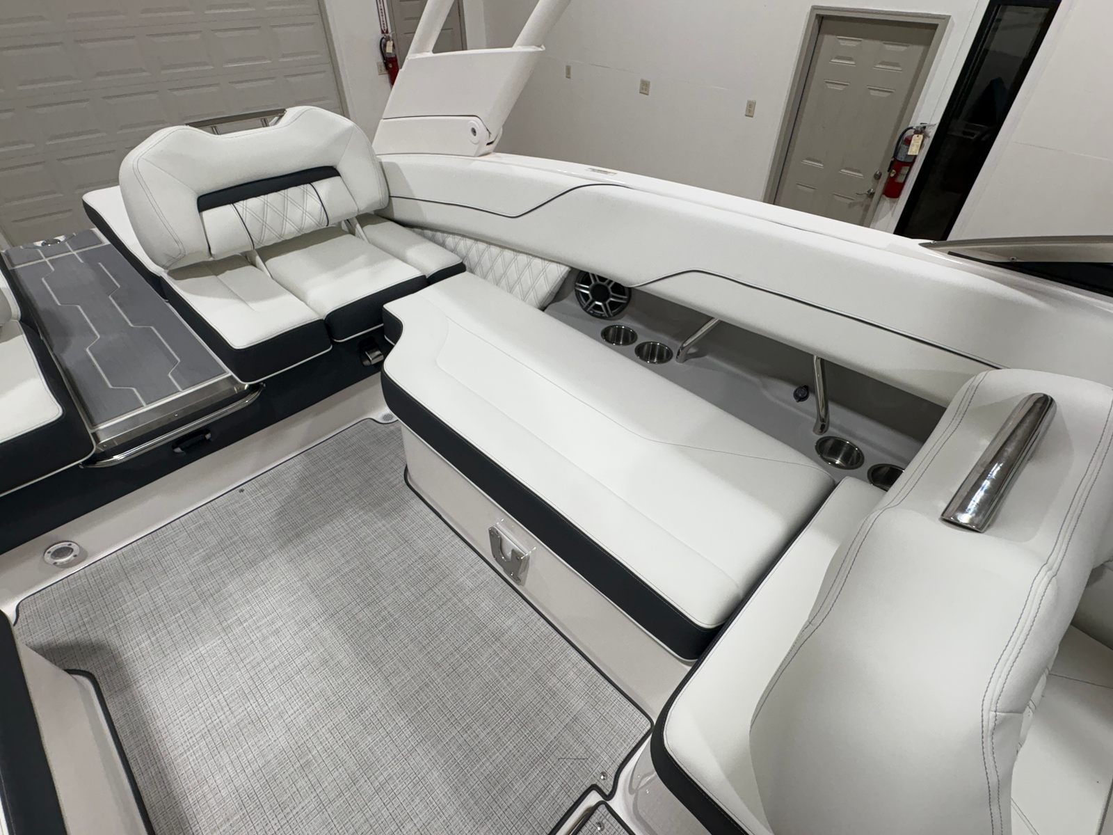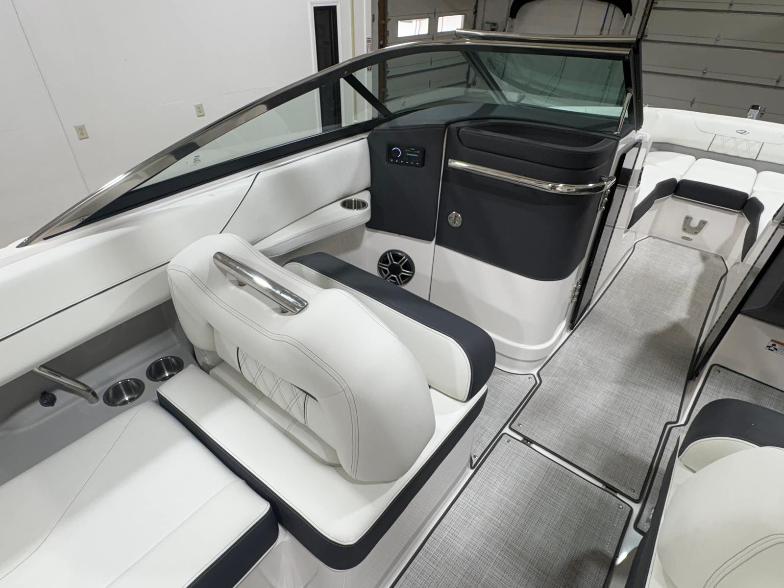 Practicality is at the core of the Regal LS6’s design. The travel storage cover and durable canvas protect your boat from the elements, reducing maintenance and preserving its showroom shine. The dual battery switch with tray and cables provides reliable power management, ensuring your electronics and accessories are always ready for use. The cockpit seagrass mat is not only stylish but also easy to clean, making post-adventure tidying a breeze.Docking and maneuvering are simplified by the LS6’s responsive handling and thoughtfully engineered hull, making it suitable for both experienced captains and those new to boating. The efficient Volvo engine helps keep fuel costs manageable, so you can spend more time enjoying the water and less time worrying about expenses. With ample storage throughout the boat, you’ll have plenty of space for gear, snacks, and water toys, ensuring every outing is well-equipped and stress-free.