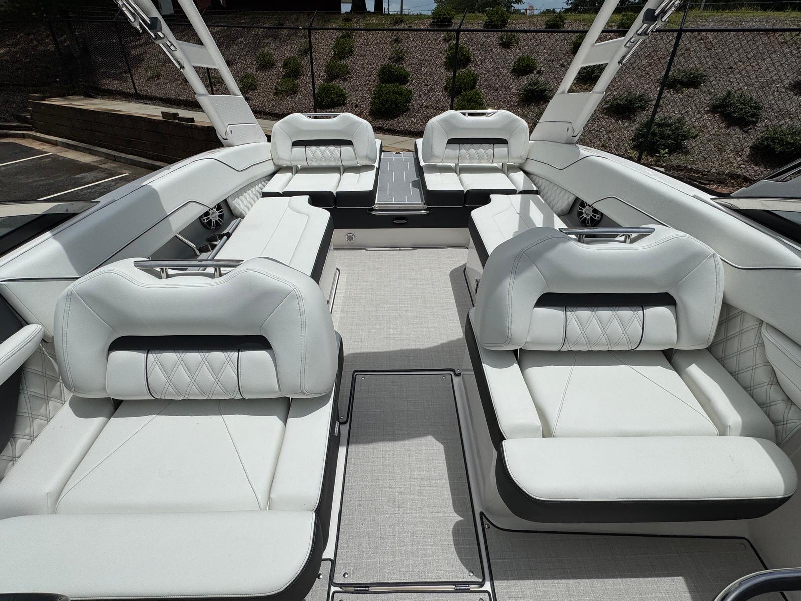 The Regal LS6 Bowrider is designed with real-world convenience in mind. The Fender Clips make docking quick and stress-free, allowing you to tie up with confidence at any marina or dock. The dual battery system ensures you have reliable power for all your electronics and accessories, even during extended outings. The pump-out toilet fittings add a layer of comfort for longer trips, making the LS6 ideal for all-day adventures.Storage solutions are integrated throughout the boat, so you can keep your space organized and clutter-free. The efficient hull design not only enhances performance but also contributes to fuel efficiency, helping you make the most of every outing. Whether you are an experienced boater or new to the water, the LS6’s intuitive controls and responsive handling make it easy to operate and enjoy.