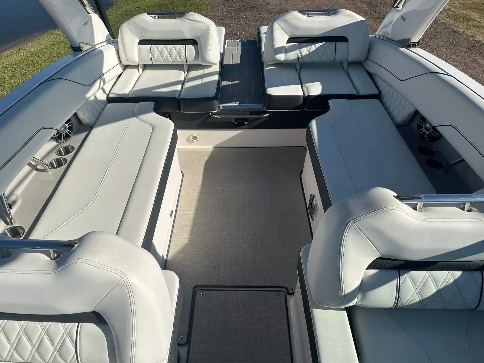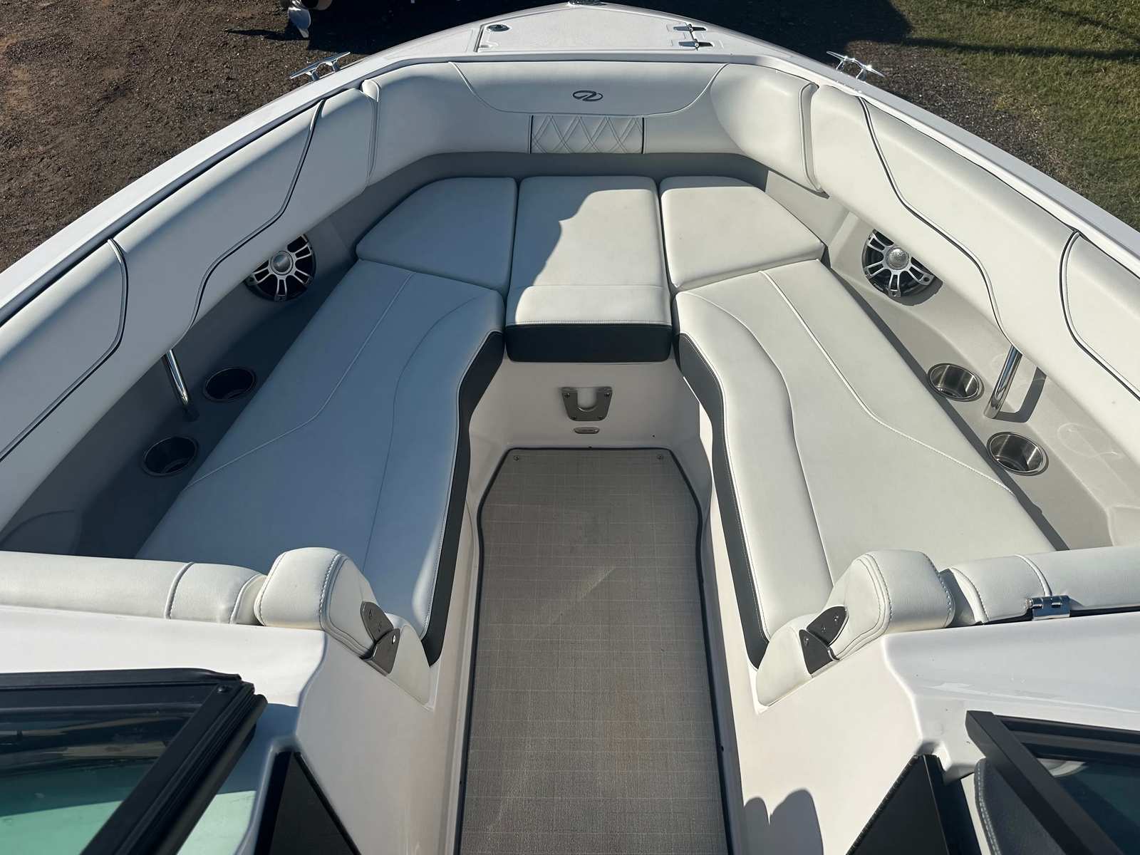 The 2024 Regal LS6 is a 26-foot bowrider that exemplifies modern boating excellence. With its sleek lines, contemporary styling, and spacious layout, this boat is engineered to impress both on the dock and out on the waves. As a used bowrider boat for sale, the LS6 offers exceptional value, combining the benefits of a nearly-new vessel with the savings of a pre-owned model. The 26-foot length provides ample space for friends and family, making it an ideal choice for social gatherings, water sports, or simply soaking up the sun.
