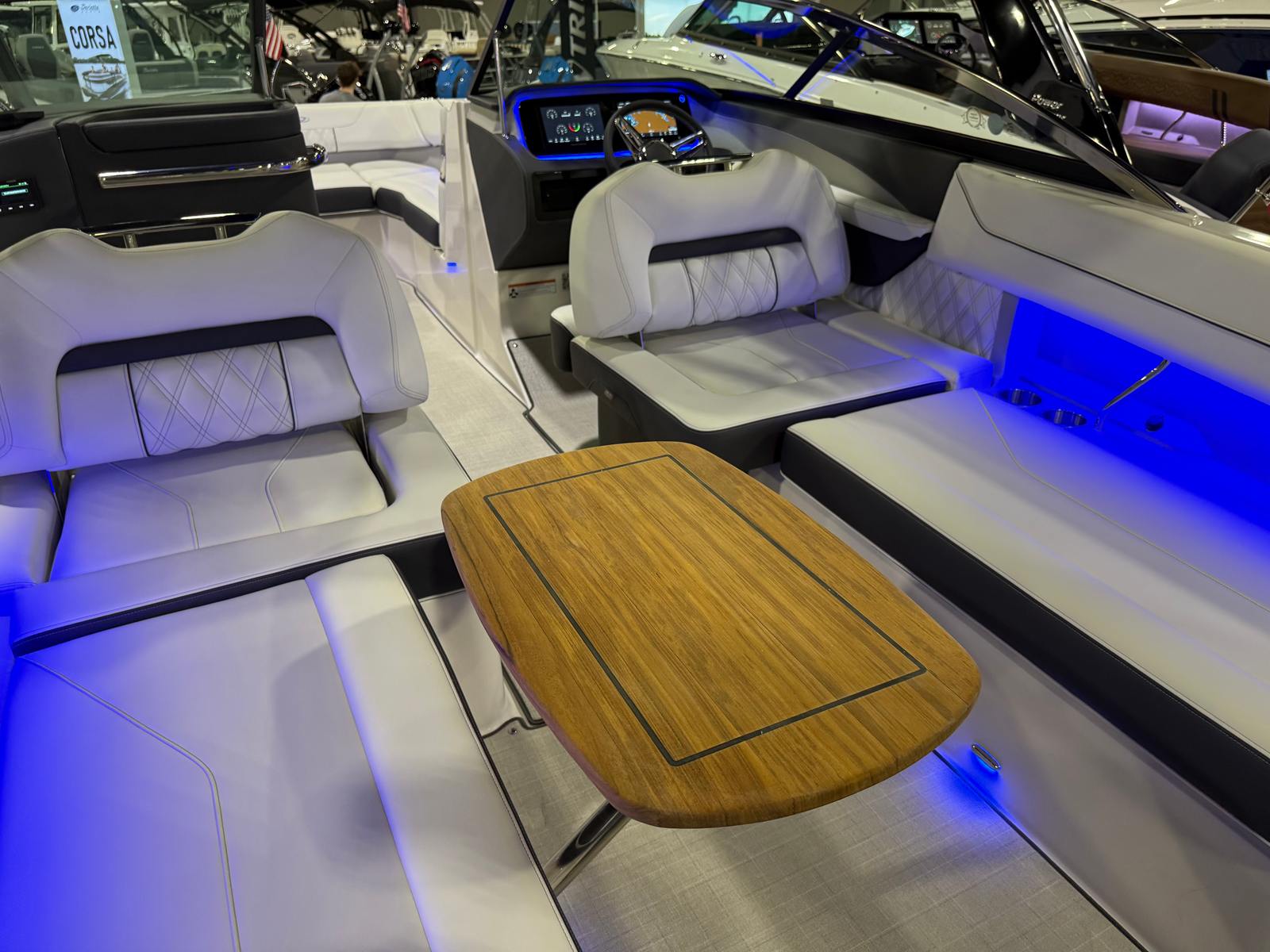 Owning the Regal LS6 Bowrider means embracing a lifestyle of fun, relaxation, and social connection. The spacious layout provides ample room for lounging, sunbathing, or enjoying lively conversations with friends and family. The plush seating and ergonomic design ensure everyone on board is comfortable, whether you’re cruising at high speeds or anchored in a quiet cove.The advanced cockpit technology makes navigation intuitive and enjoyable, allowing you to focus on the experience rather than the mechanics. The teak table transforms the cockpit into a social hub, perfect for sharing meals, playing cards, or simply soaking up the sun. The combination of stylish finishes and practical features creates an inviting atmosphere that encourages relaxation and togetherness.