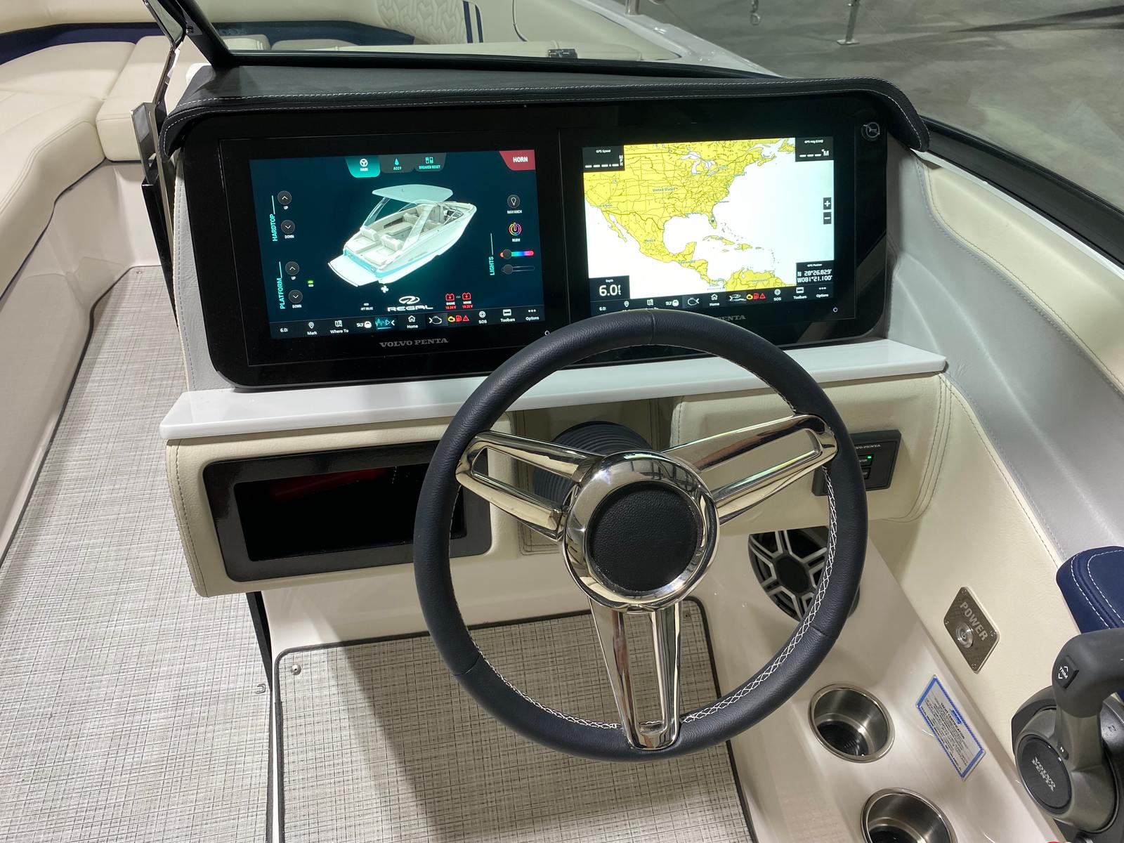 At the heart of the Regal LS6 is a powerful Volvo V8 350 EVC2 DP CAT engine, delivering a robust 350 horsepower. This advanced engine configuration ensures smooth acceleration, responsive handling, and impressive top speeds, making every outing on the water exhilarating. Whether you are cruising along the coastline, towing water sports enthusiasts, or simply enjoying a leisurely ride, the LS6’s performance capabilities are sure to impress. The single-engine setup also contributes to easier maintenance and efficient operation, allowing you to spend more time enjoying the water and less time worrying about upkeep.