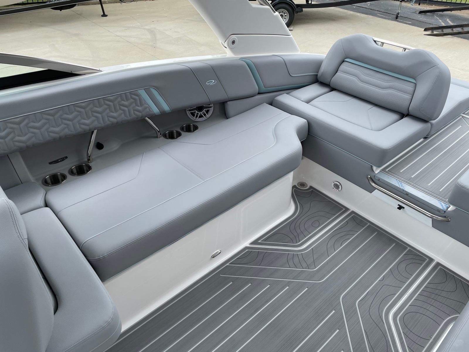 At the heart of the 2026 Regal LS9 Surf Ultimate is a powerful Volvo V8 380 FWD EVC2 DP CAT engine, delivering an impressive 380 horsepower. This advanced engine ensures exhilarating acceleration, smooth cruising, and exceptional handling, making every ride both thrilling and comfortable. The forward drive system is engineered for optimal surf performance, allowing you to create the perfect wake for watersports or enjoy a smooth, stable ride for leisurely cruising. Whether you’re carving through waves or gliding across calm waters, the LS9 Surf Ultimate’s performance capabilities set it apart from other bowrider boats for sale.