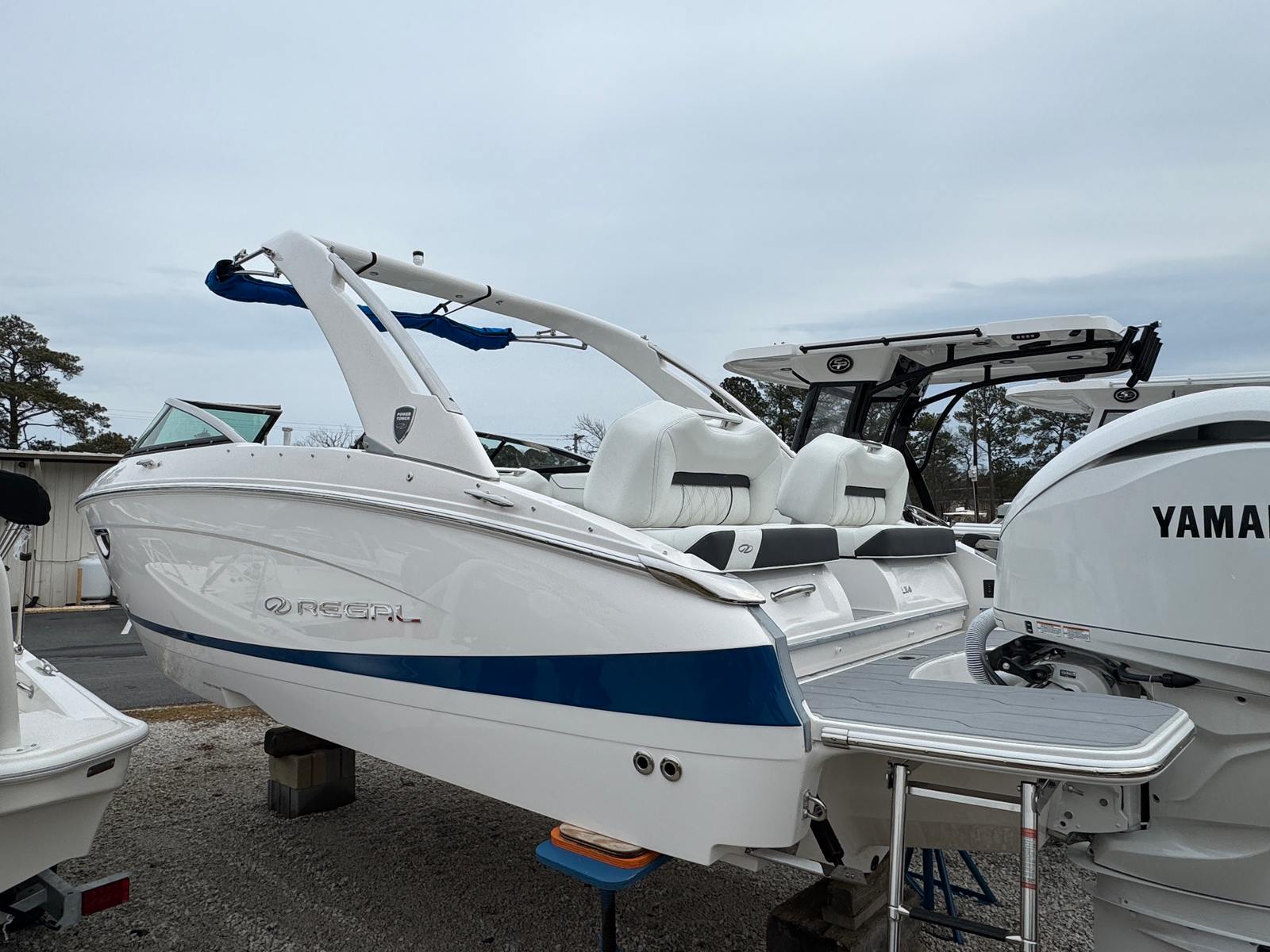 The new Regal LX4 delivers premium performance, luxurious comfort, and striking style—powered by a Yamaha F300 HP motor (White) for smooth, reliable, and efficient cruising. With Regal’s optimized FasTrac hull design, the LX4 planes faster and runs more efficiently than comparable models, offering the perfect blend of power and refinement.