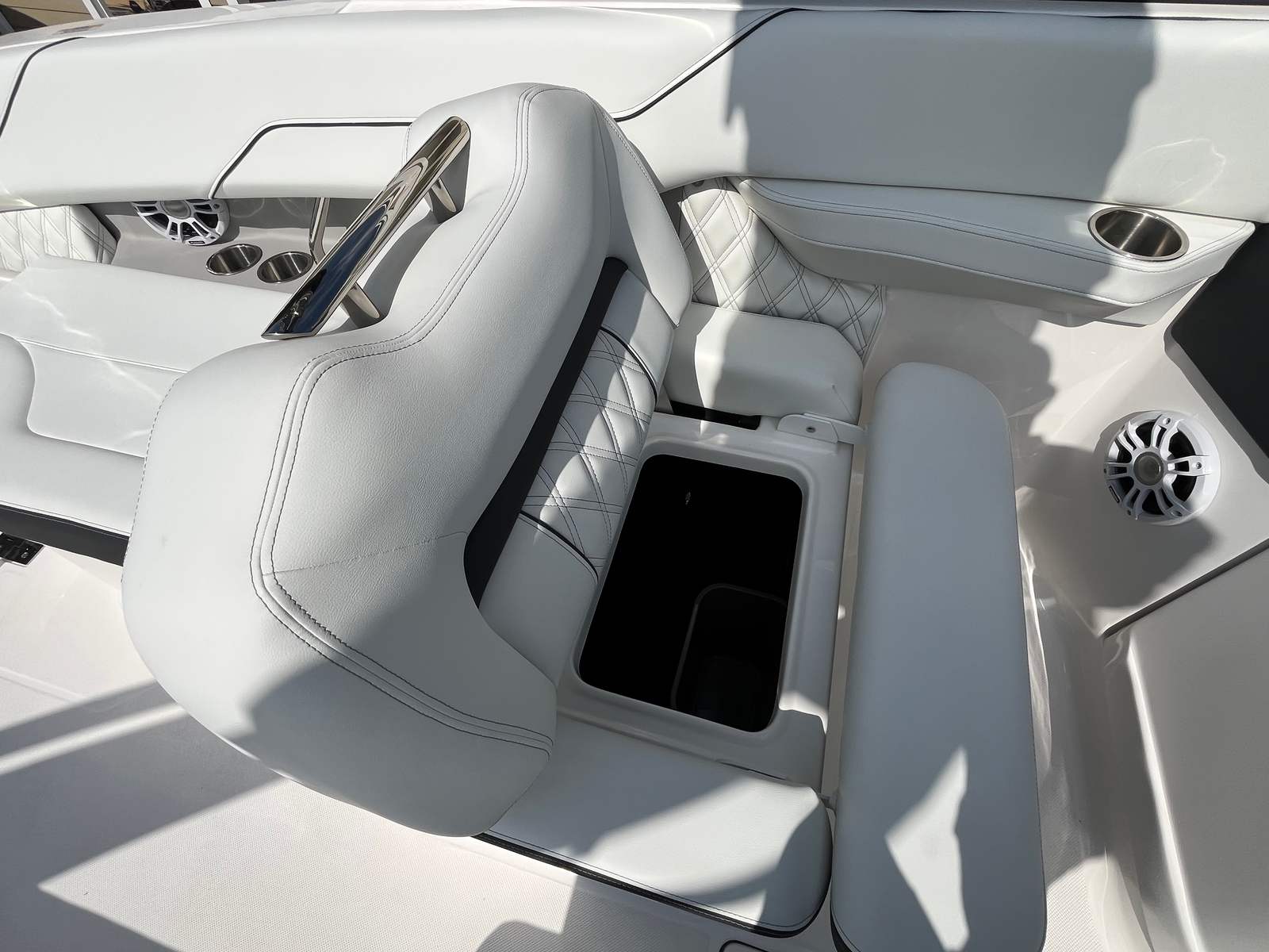 Practicality meets luxury in the 2025 Regal LX4. The dual battery system and onboard charger provide reliable power for all your electronics and accessories, so you can focus on having fun without worrying about running out of juice. The bow thruster makes docking and close-quarters maneuvering a breeze, reducing stress and making every outing more enjoyable.The bow and cockpit covers protect your investment from the elements, ensuring your boat stays clean and ready for your next adventure. The transom shower and pressure water package add convenience for swimmers and sunbathers, making it easy to rinse off and stay comfortable throughout the day.With its thoughtful design and user-friendly features, the LX4 is as practical as it is stylish, offering a seamless boating experience from start to finish.