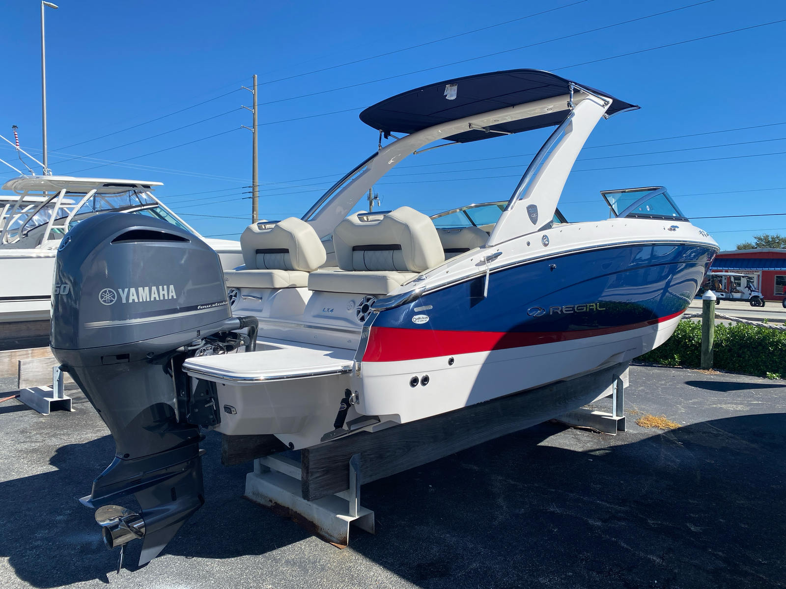 The 2026 Regal LX4 is a remarkable bowrider that combines performance, luxury, and innovation in one stunning package. With its powerful Yamaha F250XB engine, advanced navigation technology, and a host of premium features—including the Tahiti Beach White bottom color, dual Garmin displays, transom shower, bow sunshade, battery charger, bow thruster, stereo and lighting package, River Rock interior, and bow walk-thru doors—this boat is designed to deliver unforgettable experiences on the water.If you are looking for a Bowrider boat for sale or a Regal boat for sale that offers style, comfort, and versatility, the LX4 is the perfect choice. Discover the joy of boating with the 2026 Regal LX4 and create memories that will last a lifetime. Contact your local dealer today to learn more and schedule a viewing of this exceptional new bowrider.