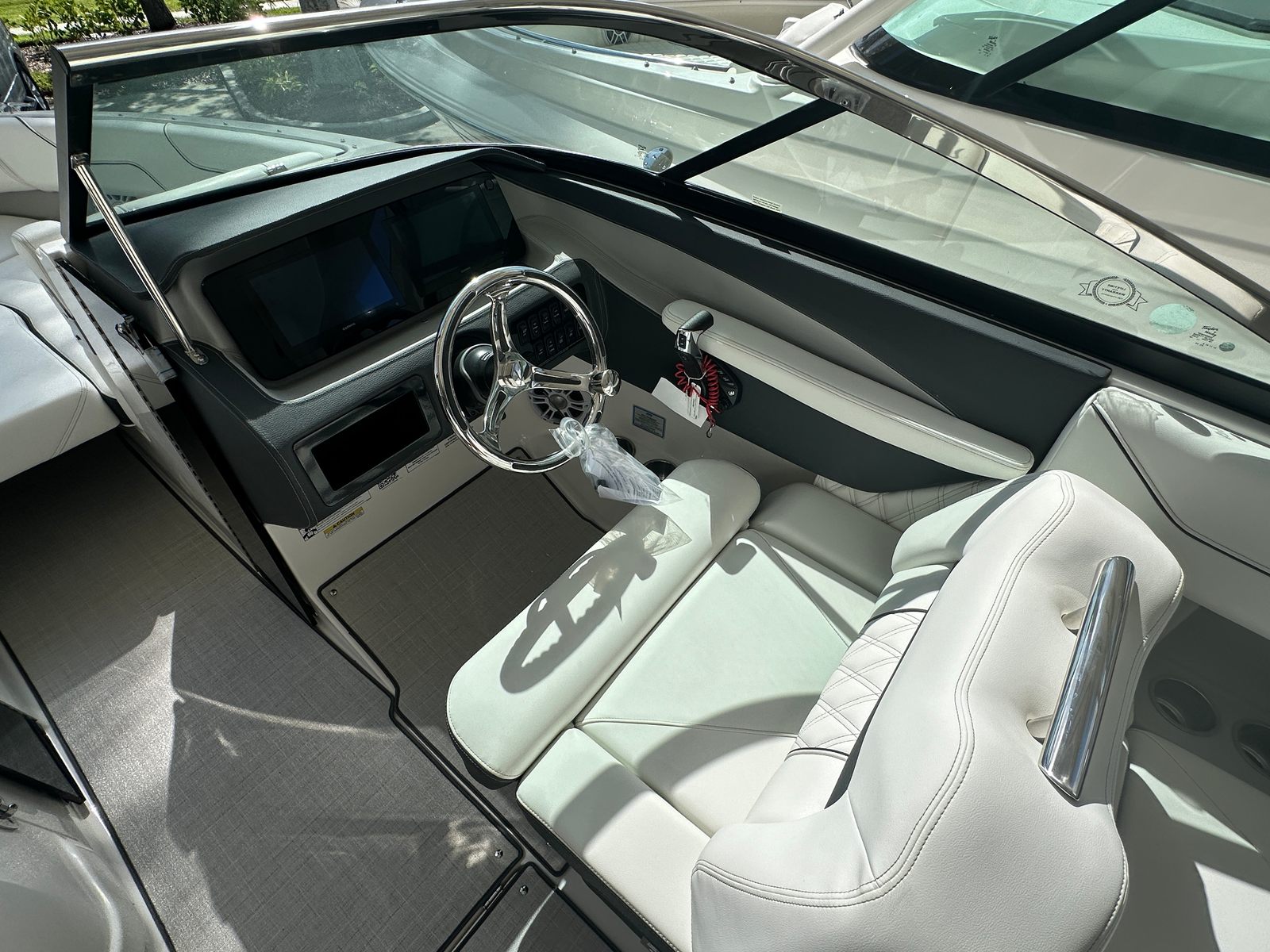 The Regal LX6 Bowrider is packed with special features designed to enhance your time on the water. Docking lights provide added safety and convenience when arriving at the marina after dark, while the Port Light - Half Moon brings natural light into the cabin area for a bright and airy feel. The Cockpit Seagrass Mat offers a comfortable, non-slip surface underfoot, perfect for barefoot relaxation or entertaining guests.Bow Walk-Thru Doors make it easy to access the forward seating area, ensuring smooth movement throughout the boat. The Bow Filler Cushion transforms the bow into a spacious sun pad, ideal for lounging or soaking up the rays. Fender Clips simplify the process of securing your boat at the dock, while the Transom Shower & Pressure Water Package allows you to rinse off after a swim or clean up before heading home. Each feature is thoughtfully integrated to maximize comfort, convenience, and enjoyment.