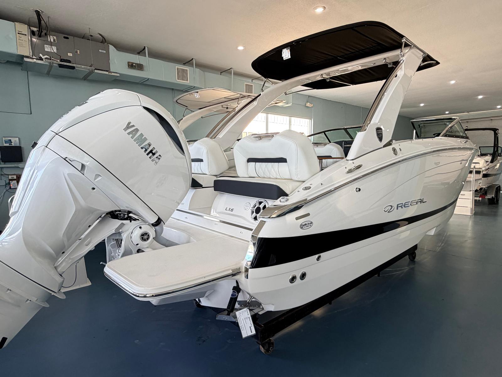 Beyond its impressive style and performance, the Regal LX6 is engineered for practical, everyday enjoyment. The ample storage space ensures you can bring along all your gear, from water sports equipment to picnic supplies. The easy-to-use covers and sunshade system make it simple to protect your investment and keep your boat looking its best.Docking and maneuvering are made easier thanks to the responsive handling and thoughtful design, allowing you to navigate tight spaces with confidence. The efficient engine and power management features help you make the most of every gallon of fuel, so you can spend more time enjoying the water and less time worrying about logistics.