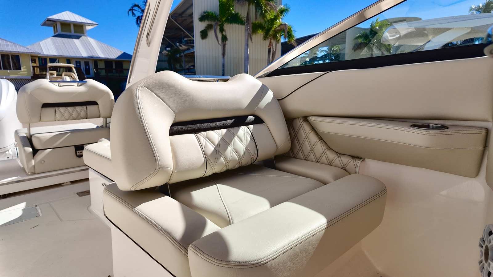 Practicality meets luxury in the Regal LX6 Bowrider. The fender clips simplify docking, allowing you to secure your boat quickly and efficiently. The trim tabs offer precise control over the boat’s performance, ensuring a smooth and comfortable ride regardless of water conditions. Storage solutions are thoughtfully integrated throughout the vessel, providing ample space for gear, water toys, and personal items without compromising on style or comfort.The Yamaha F350XSA2 engine’s fuel efficiency means you can spend more time enjoying the water and less time refueling. The dual Garmin displays and B60 transducer make navigation and fish finding effortless, whether you’re exploring new waterways or returning to your favorite fishing spot. The Regal LX6 Bowrider is designed to make ownership easy, enjoyable, and stress-free.