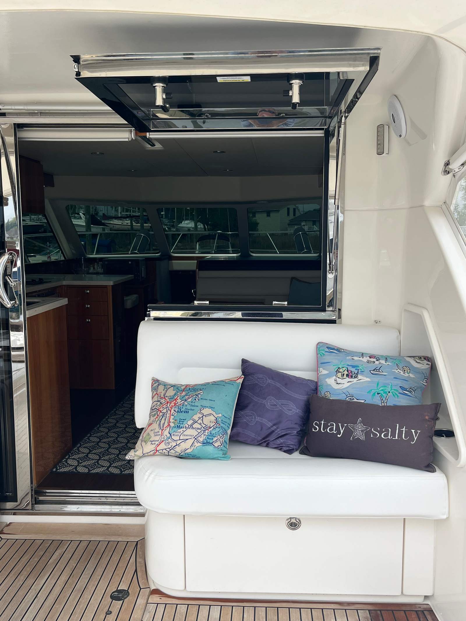 Powering the Riviera 43 Flybridge are two robust engines, delivering a combined 870 horsepower. This impressive power package ensures smooth acceleration, responsive handling, and the ability to cruise comfortably at a variety of speeds. Whether you are navigating coastal waters, exploring offshore destinations, or simply enjoying a leisurely cruise, the performance of this flybridge boat is sure to impress. The twin-engine configuration not only enhances maneuverability but also provides peace of mind for longer journeys, making this Riviera boat for sale a reliable choice for both seasoned captains and newcomers alike.