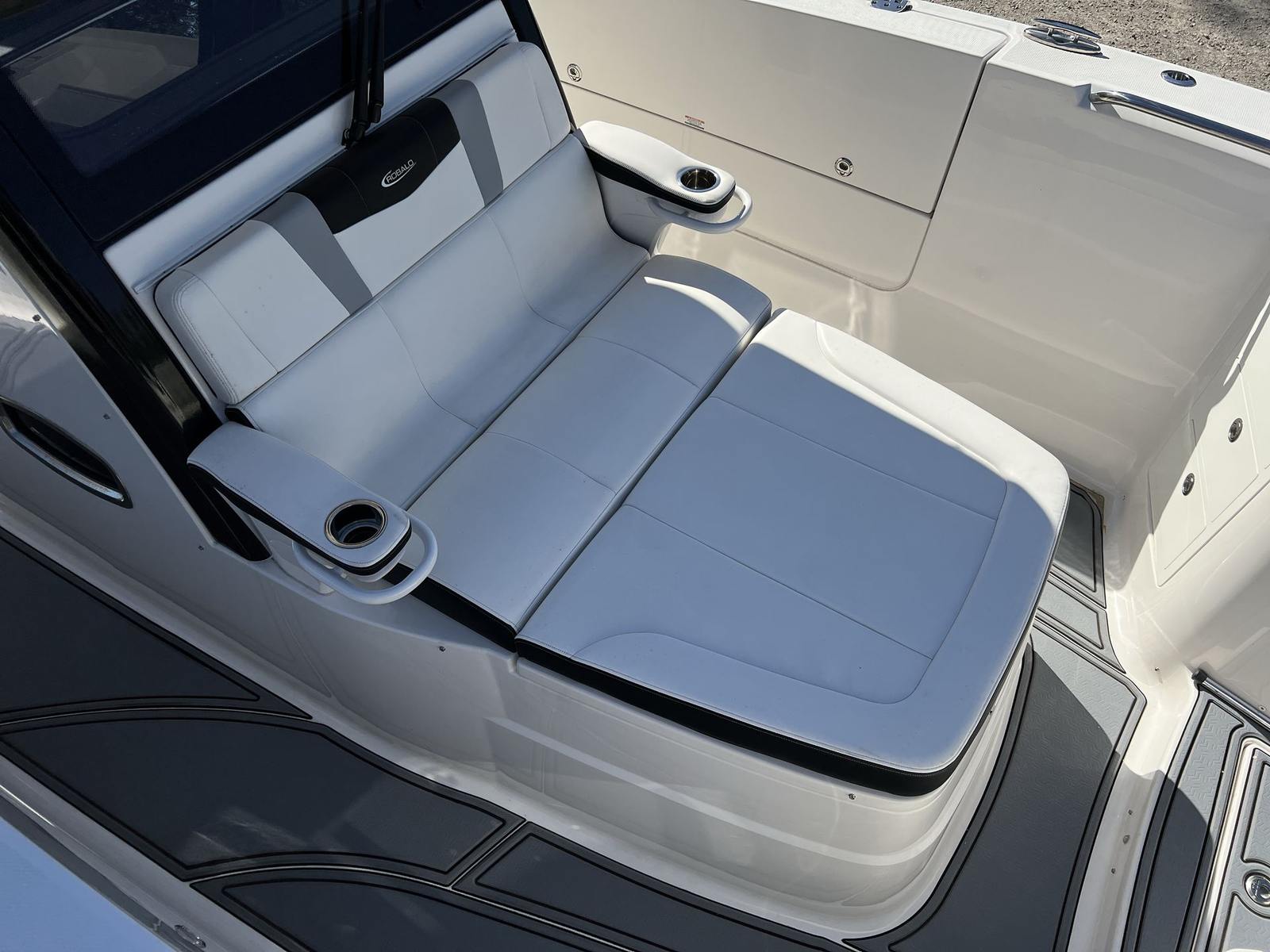 The Robalo 360 CC is packed with features designed to enhance your time on the water. Its spacious Center Console layout offers unobstructed movement around the deck, making it ideal for fishing, entertaining, or relaxing. The helm station is ergonomically designed for optimal visibility and control, with intuitive instrumentation that puts all essential functions at your fingertips. The generous length of 36.5 feet provides ample room for guests, gear, and activities, while the robust construction ensures durability and longevity.Special features of the Robalo 360 CC include advanced navigation systems, premium seating, and versatile storage solutions. The boat’s design emphasizes both function and style, with high-quality materials and finishes throughout. Whether you’re casting lines, hosting a sunset cruise, or enjoying water sports, the 360 CC adapts to your needs with ease.