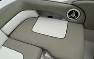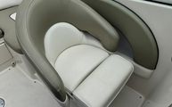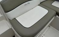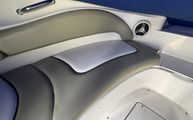 The 220 Sundeck makes room for 10 riders to stretch out in the lounge seating. The bow seating has its own boarding ladder and shower, and room for the table to set up when needed. The cockpit has L-shaped seating as well as a bolstered Captain's chair. Access to the head is in the privacy compartment in front of the passenger seat.