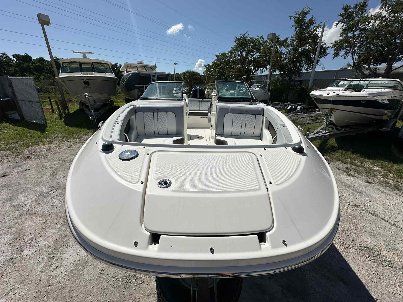 This Sea Ray boat for sale is as versatile as it is stylish, making it suitable for a wide range of activities. The generous storage compartments are perfect for stowing life jackets, water toys, and picnic supplies, keeping the deck clutter-free and ready for fun. The swim platform and easy boarding ladder make it simple to enjoy swimming, snorkeling, or just lounging by the water’s edge. When it’s time to dock, the SDX 220’s responsive handling and compact footprint make maneuvering in tight spaces a breeze.Fuel efficiency is another highlight of this bowrider, allowing you to spend more time on the water and less time at the pump. The thoughtful design also makes cleaning and maintenance straightforward, so you can focus on what matters most—enjoying your time on the water.