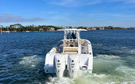 PerformanceAt the heart of the Sportsman Open 302 are twin Yamaha F350XSA2 outboard engines, finished in a brilliant white. Together, these engines deliver a combined 700 horsepower, providing exhilarating acceleration and smooth cruising capabilities. Whether you are navigating open waters or maneuvering through tight marinas, the power and reliability of Yamaha engines ensure a confident and enjoyable ride. The advanced Yamaha Helm Master EX system, complete with autopilot, offers precise control and effortless navigation, making every journey as enjoyable as the destination.