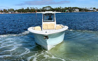 Features and SpecificationsThis center console boat for sale is packed with features designed to enhance your time on the water. The Edson 13” stainless steel comfort grip steering wheel with PowerKnob provides responsive handling and a premium feel at the helm. The ProMariner ProTournament Elite 3 battery charger (4-bank) ensures your electronics and accessories are always powered up and ready for action. For anglers, the trolling motor plug, harness, and adapter offer seamless integration for your fishing gear, making it easy to target your favorite species. The combination of Ice Blue and Snow White on the hull, along with the Coastal Beige upholstery, creates a sophisticated and inviting environment for both relaxation and adventure.