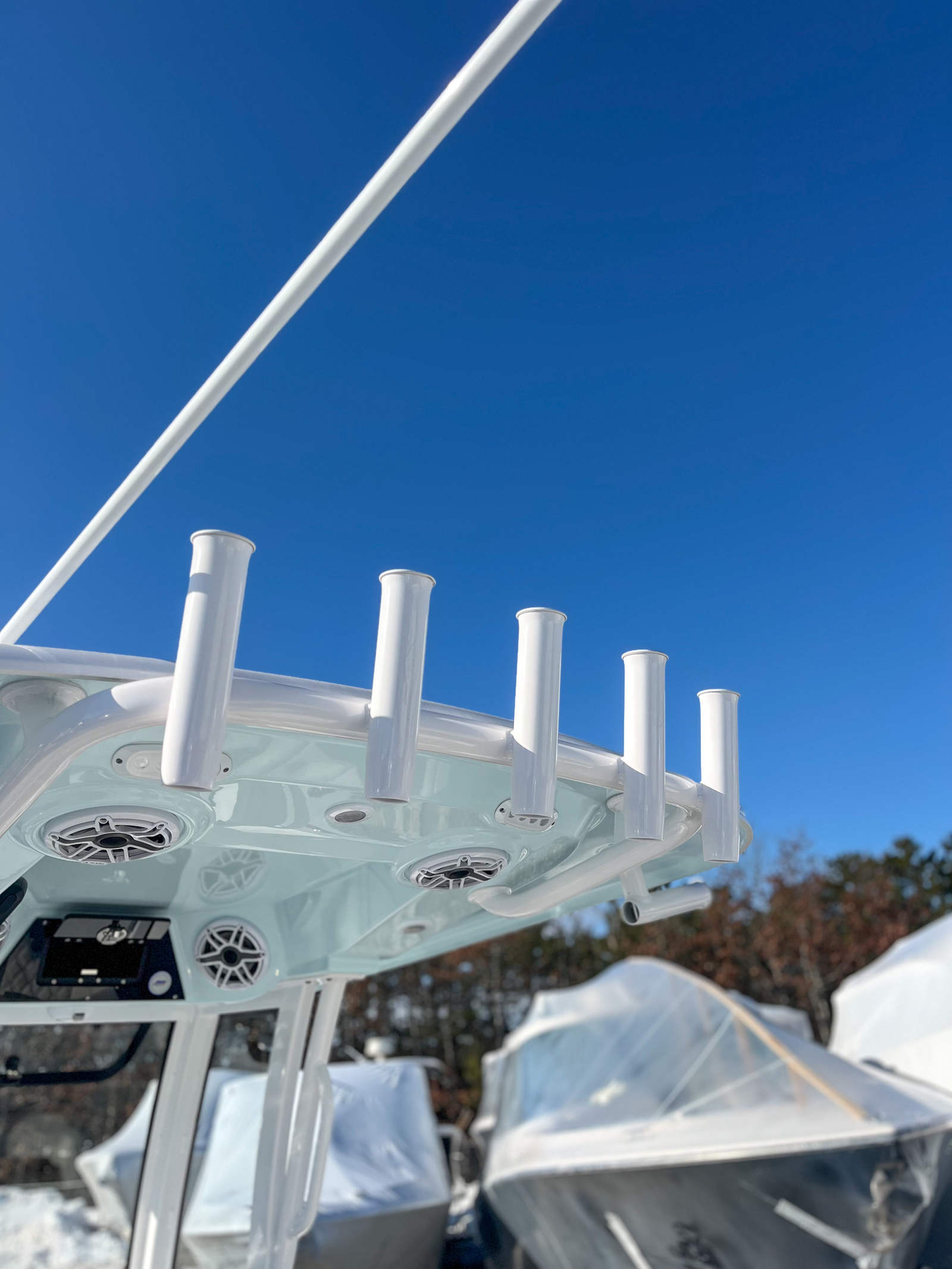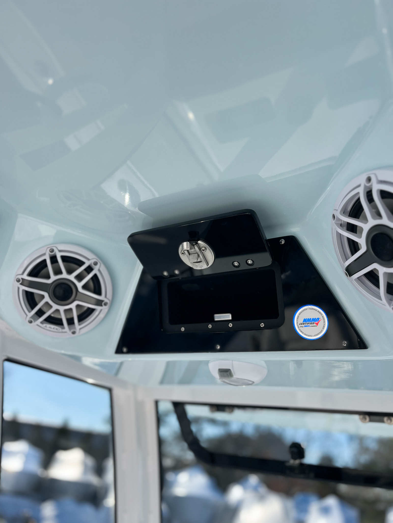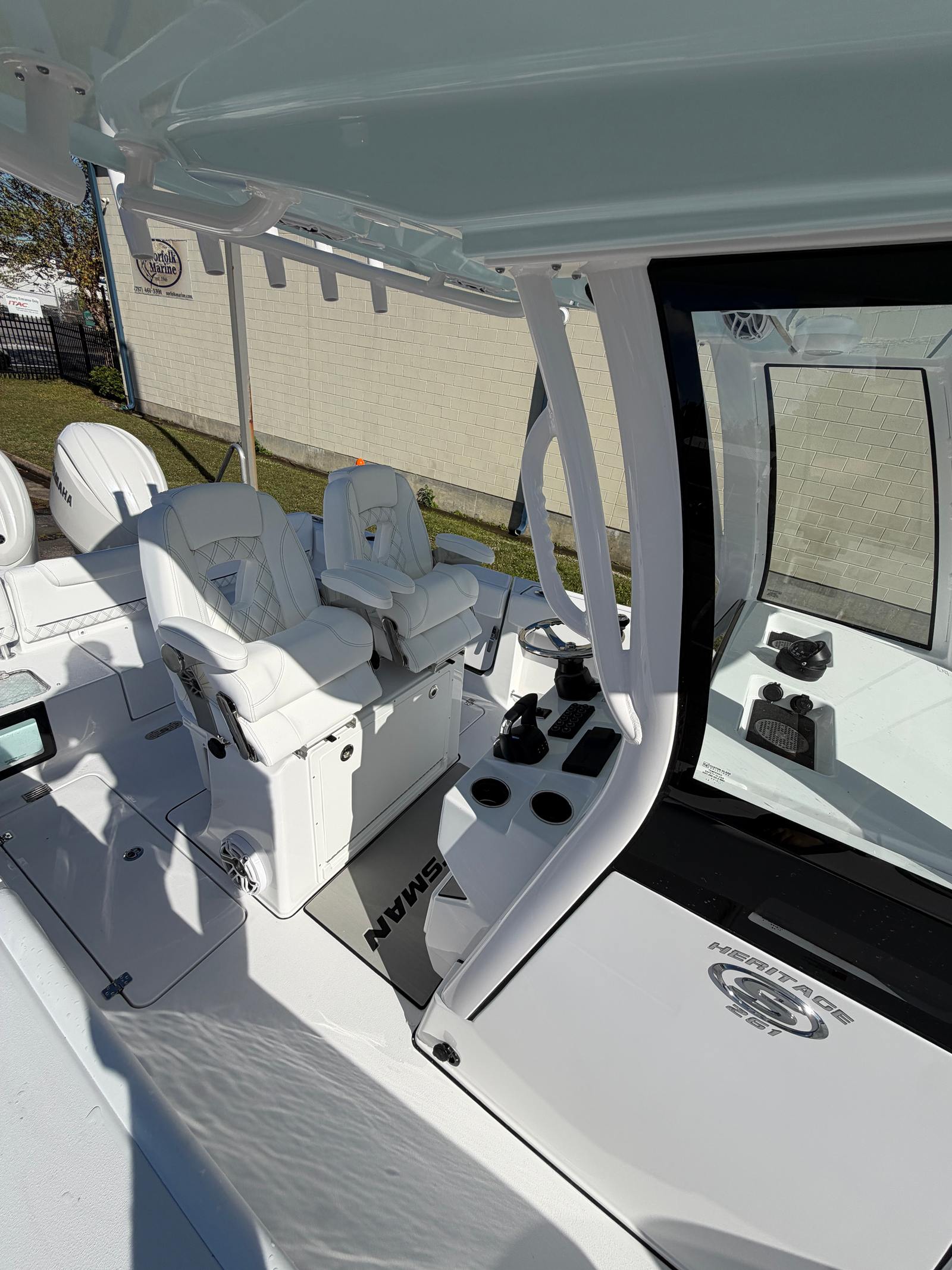 The Sportsman Heritage 261 is loaded with premium features designed to enhance your time on the water. The Ice Blue hull and matching bottom create a cohesive, eye-catching look, while the hard top with LED lighting provides shade and illumination for day and night excursions. The hard top’s underside is also finished in Ice Blue, adding a touch of elegance and continuity to the design.Step aboard and you’ll find a console with a fiberglass liner and a convenient cooler seat, perfect for keeping refreshments chilled during long days on the water. The Serenity Sileather Icecap White upholstery offers a luxurious, easy-to-clean seating surface that stays cool and comfortable even under the summer sun. The leaning post features dual premium chairs with swivel bases, providing ergonomic support and flexibility for both captain and co-captain.Navigation and connectivity are at your fingertips with two Garmin 12-inch GPS screens, complete with built-in Wi-Fi. These advanced displays make route planning, fish finding, and system monitoring intuitive and efficient, ensuring you’re always in control and informed.The boat’s powder coating in white not only enhances durability but also adds a sophisticated touch to the overall aesthetic. Every detail of the Heritage 261 is thoughtfully designed to maximize comfort, convenience, and enjoyment.