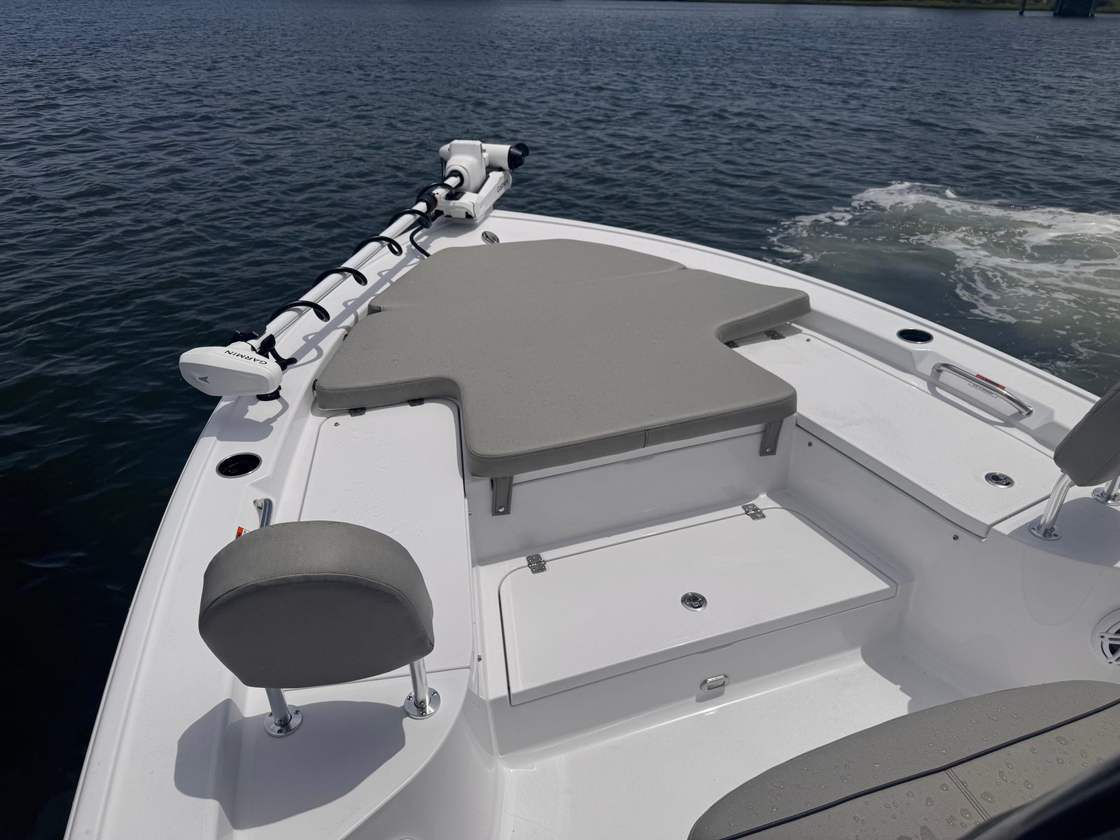 The Sportsman Masters 227 is as practical as it is stylish. Its manageable length makes docking and trailering straightforward, even for less experienced boaters. The efficient Mercury 250 V8 engine helps you maximize your time on the water without worrying about excessive fuel consumption. The under leaning post tackle storage and slide-out track for a cooler make it easy to keep essentials organized and accessible, streamlining your day on the water.The removable bow backrest and seat cushions offer versatility, allowing you to quickly adapt the bow area for fishing, lounging, or extra seating. The durable hull and premium finishes are designed to withstand the rigors of saltwater and freshwater environments, ensuring your investment remains in top condition for years to come.
