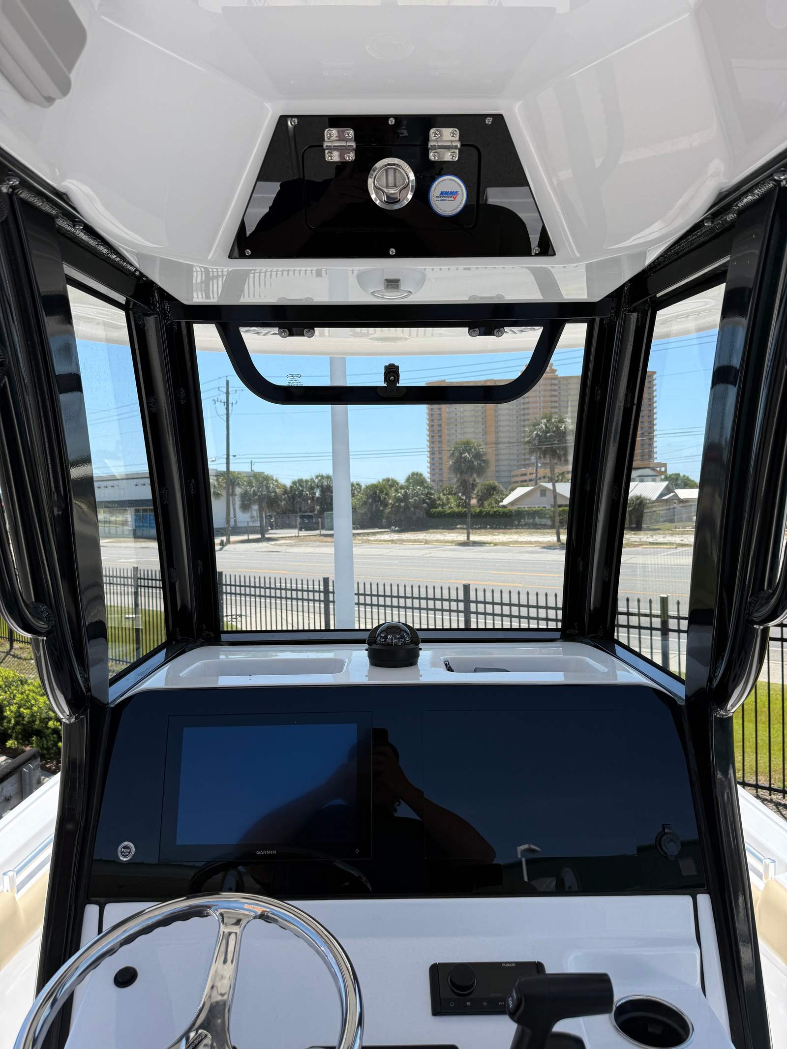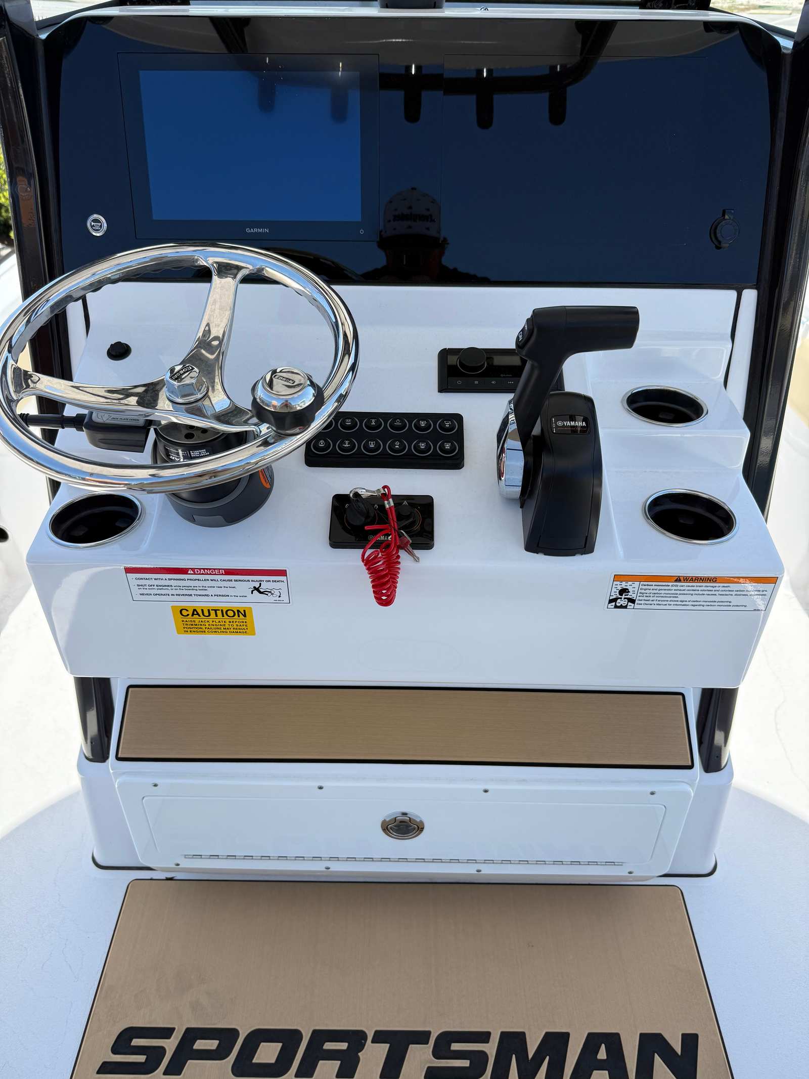 The 2026 Sportsman Masters 247 OE comes equipped with a range of special features that enhance both its functionality and aesthetic appeal. The hull side, hull bottom, and hardtop underside are all finished in a pristine Snow White, giving the boat a clean, timeless look that stands out on the water. The Coastal Beige upholstery adds a touch of elegance and comfort, creating a welcoming environment for all your guests. Black powder coating accents provide a striking contrast, highlighting the boat's modern design.One of the standout features is the Edson 13” stainless steel comfort grip steering wheel with PowerKnob. This premium steering wheel not only adds a touch of luxury to the helm but also ensures precise control and effortless maneuvering, even during long days on the water. Every detail of the Masters 247 OE has been thoughtfully designed to enhance your boating experience, from the spacious deck layout to the high-quality finishes throughout.