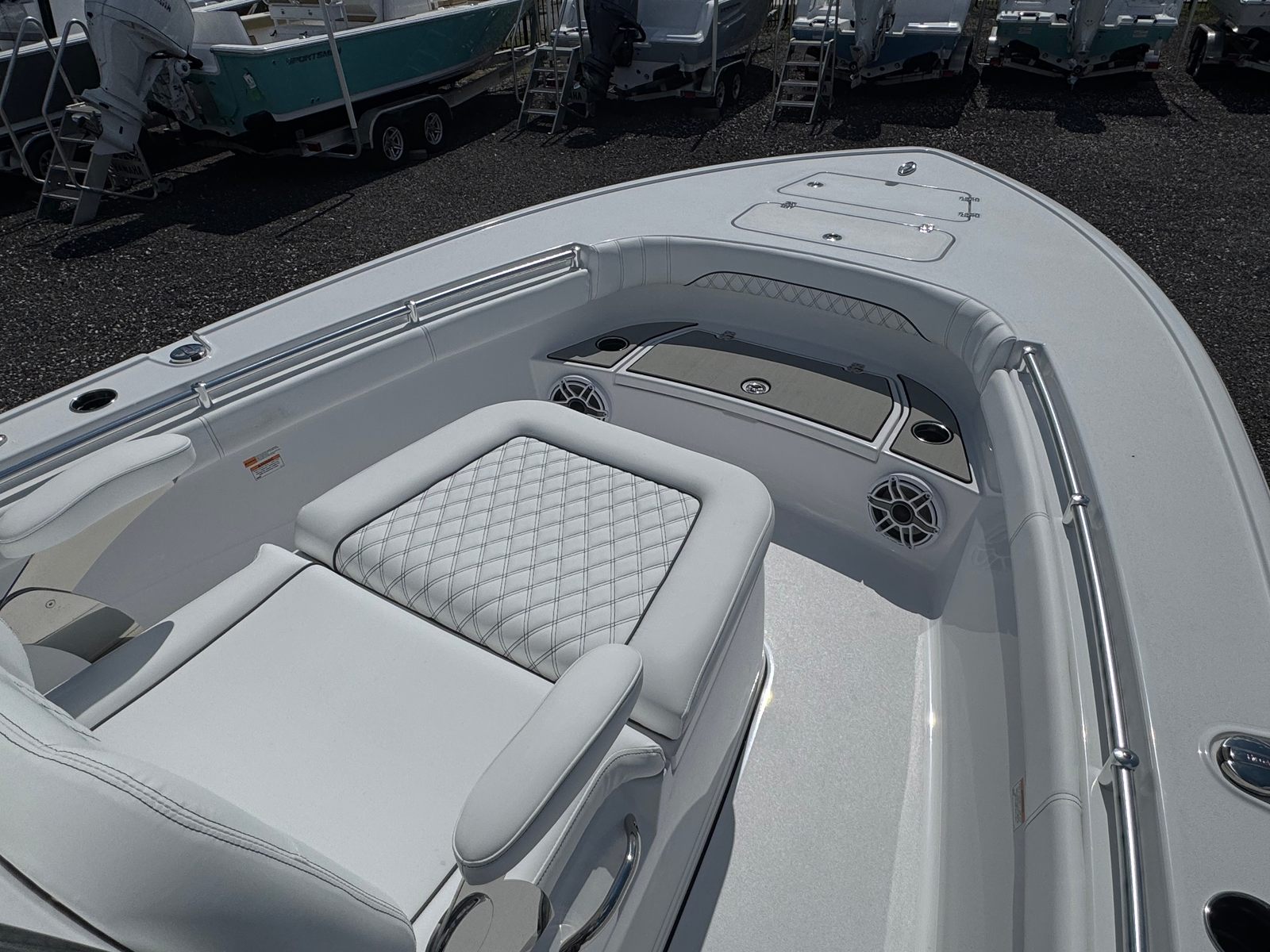 This Sportsman boat for sale is loaded with premium features designed to enhance your time on the water. The hull side, hull bottom, and hardtop underside are all finished in a pristine snow white, providing a clean and sophisticated look. The icecap white upholstery offers both comfort and durability, ensuring your seating remains inviting and easy to maintain. Black powder coating adds a bold accent, complementing the overall design and providing extra protection against the elements.One of the standout features of the Masters 267 OE is the porcelain head with overboard discharge and pump out, offering convenience and comfort for longer outings. The ProMariner ProTournament Elite 3 battery charger (5-bank) ensures your boat’s electrical systems remain powered and ready, supporting all your onboard electronics and accessories. These thoughtful touches make the Masters 267 OE a leader in its class, providing both luxury and practicality.
