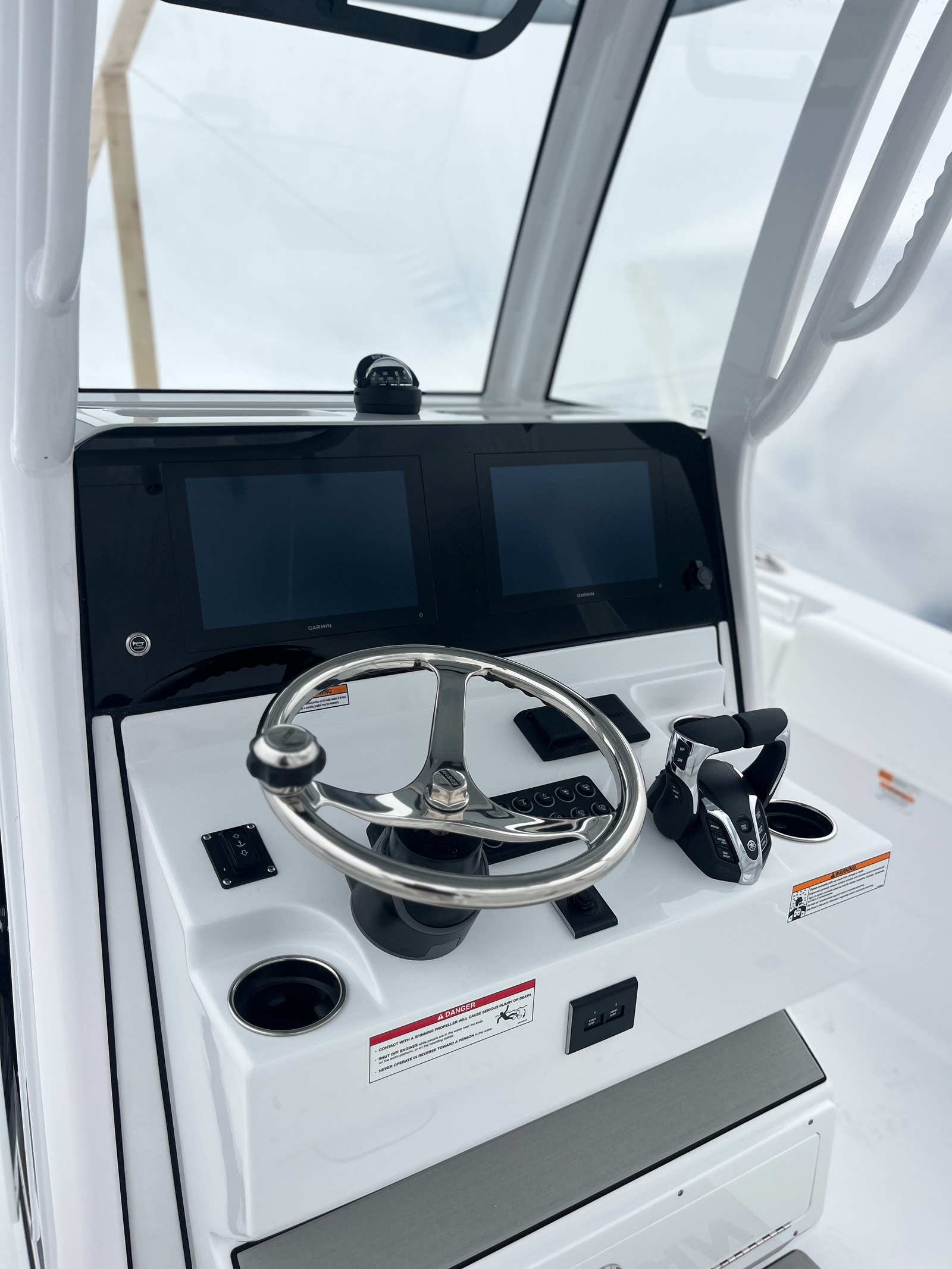 Owning the Sportsman Open 252 Center Console boat means embracing a lifestyle of fun, freedom, and relaxation. The spacious deck layout provides ample room for family and friends to move around comfortably, whether you’re fishing, sunbathing, or enjoying a picnic on the water. The removable bow sundeck/table with cushion creates a perfect spot for lounging or gathering, while the hard top with LED lighting ensures you can extend your adventures into the evening hours.The boat’s premium finishes, including the Storm Cloud Gray hull sides and Snow White hull bottom, not only look stunning but also reflect the quality and attention to detail that Sportsman is known for. The twin Yamaha engines deliver the power you need for exhilarating rides, while the advanced steering system makes handling effortless and enjoyable. With features like the porcelain head and integrated radar, you’ll appreciate the convenience and safety that come with owning a top-tier Center Console boat.