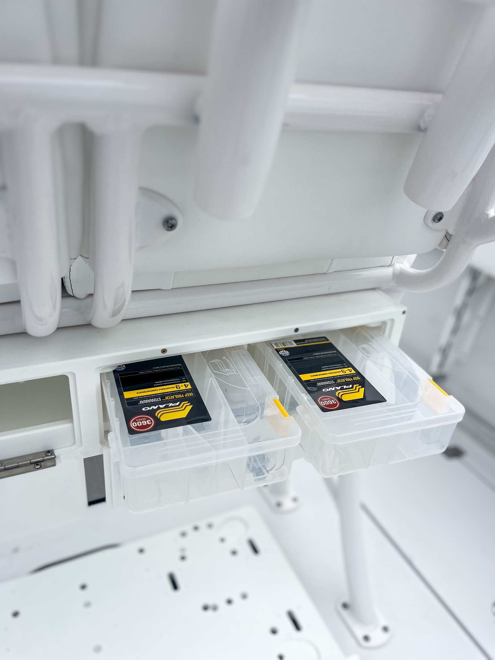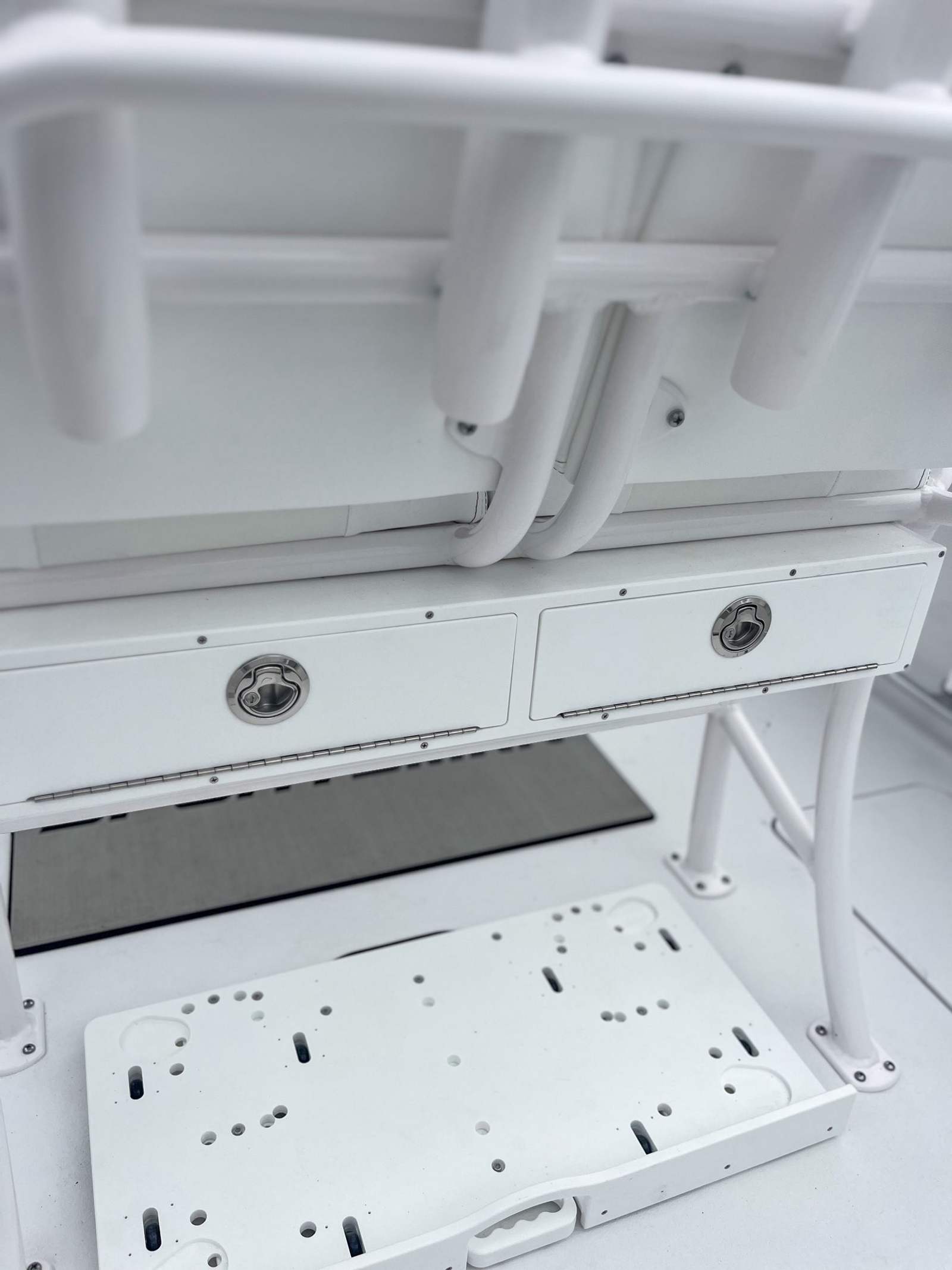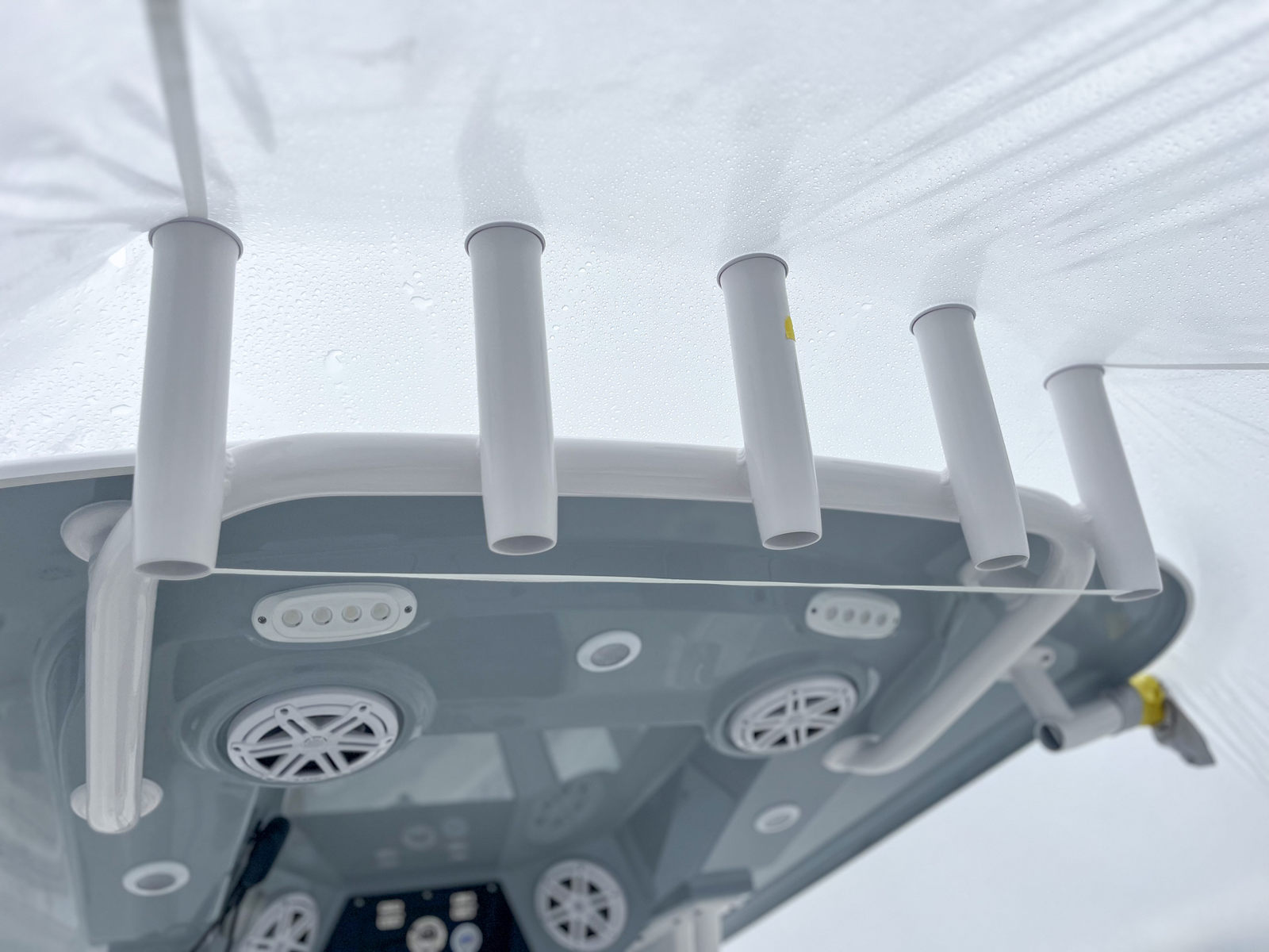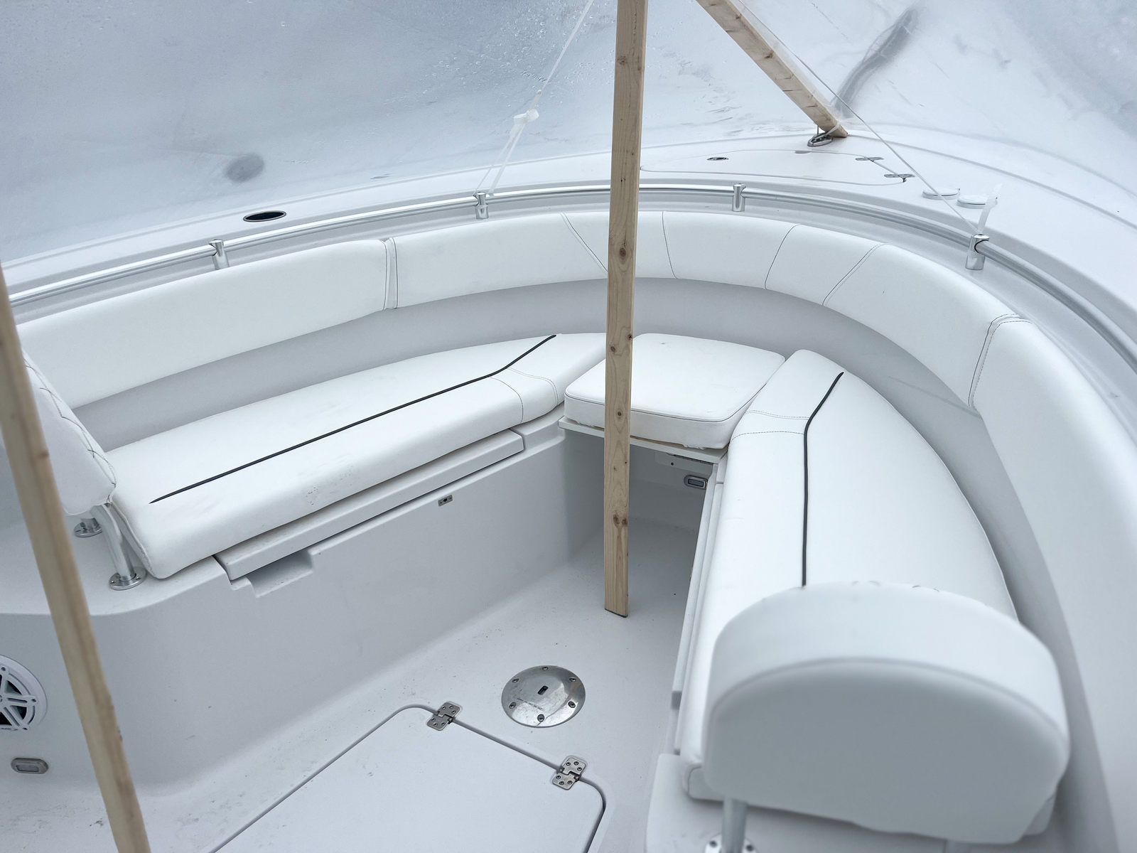 Powering the Sportsman Open 252 are twin Yamaha F150XSA2 engines, each boasting 150 horsepower for a combined total of 300 horsepower. These white engines not only enhance the boat’s visual appeal but also provide reliable, efficient performance for all your on-water adventures. The advanced engineering of the Yamaha engines ensures smooth acceleration, impressive top speeds, and responsive handling, whether you’re cruising along the coastline or heading out for a day of offshore fishing. With this level of power and precision, you can confidently tackle a variety of conditions while enjoying a thrilling ride every time you set out.