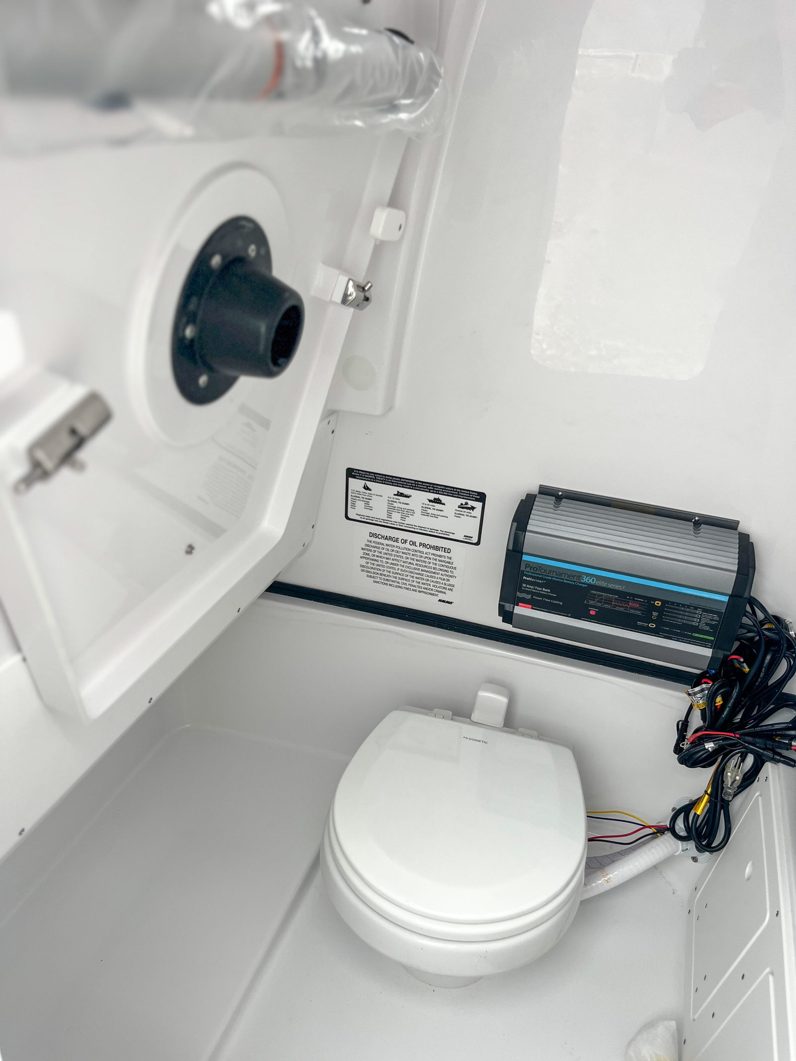 The Sportsman Open 252 is loaded with premium features designed to elevate your boating experience. The Edson 13” stainless steel Comfort Grip steering wheel with PowerKnob offers superior control and comfort, making navigation effortless even in challenging conditions. The powder coating color in white adds a clean, modern touch to the boat’s hardware, while the fiberglass hard top with integrated LED lighting provides shade and illumination for day and night excursions.Navigation and safety are enhanced by the Garmin GMR™ Fantom 18x Radome, a state-of-the-art radar system that delivers reliable performance and peace of mind on every journey. The porcelain head with overboard discharge and pump out ensures convenience and comfort during extended trips, while the removable bow sundeck/table with cushion transforms the bow area into a versatile space for relaxation, dining, or socializing.