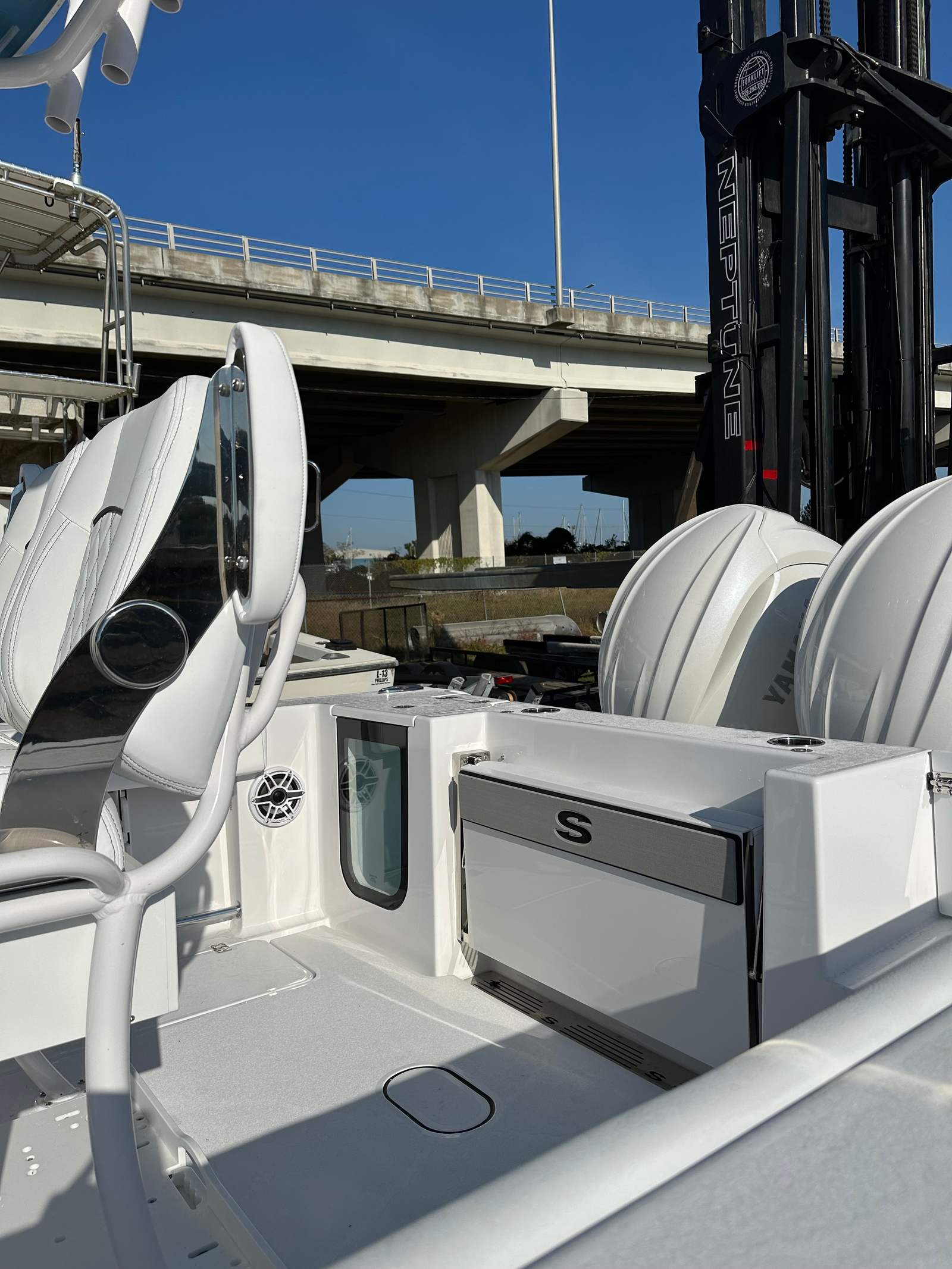At the heart of the Sportsman Open 252 are twin Yamaha F150XSA2 engines, finished in a sleek white that complements the boat’s overall design. With a combined 300 horsepower, this Center Console boat delivers exhilarating performance, whether you’re cruising along the coastline, heading offshore for a day of fishing, or simply enjoying a leisurely ride with friends and family. The Yamaha engines are renowned for their reliability, smooth operation, and fuel efficiency, ensuring you spend more time on the water and less time at the pump. The responsive handling and impressive acceleration make navigating various water conditions a breeze, giving you the confidence to explore new destinations.