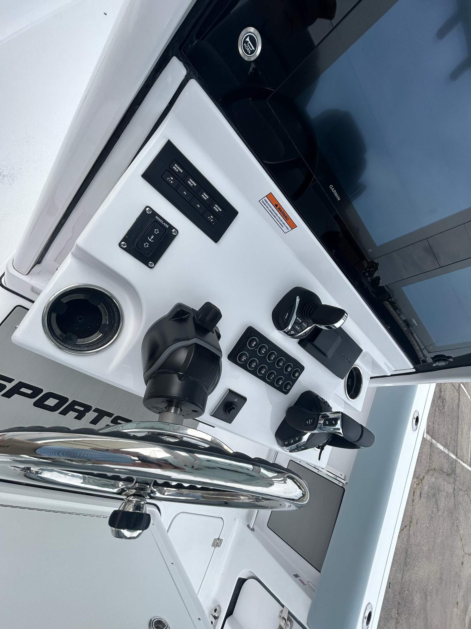 The Sportsman Open 262 is designed with practicality in mind, offering features that simplify storage, docking, and maintenance. The intuitive Yamaha Helm Master EX system with autopilot makes docking and maneuvering effortless, even in challenging conditions. The spacious deck layout provides ample storage for gear, tackle, and personal items, keeping everything organized and within reach.Fuel efficiency is a hallmark of the twin Yamaha engines, allowing you to spend more time on the water and less time at the pump. The ProMariner battery charger ensures your boat’s systems are always ready, reducing downtime and enhancing reliability. Whether you’re heading out for a quick fishing trip or planning a weekend getaway, this Center Console boat is equipped to handle all your needs with ease.
