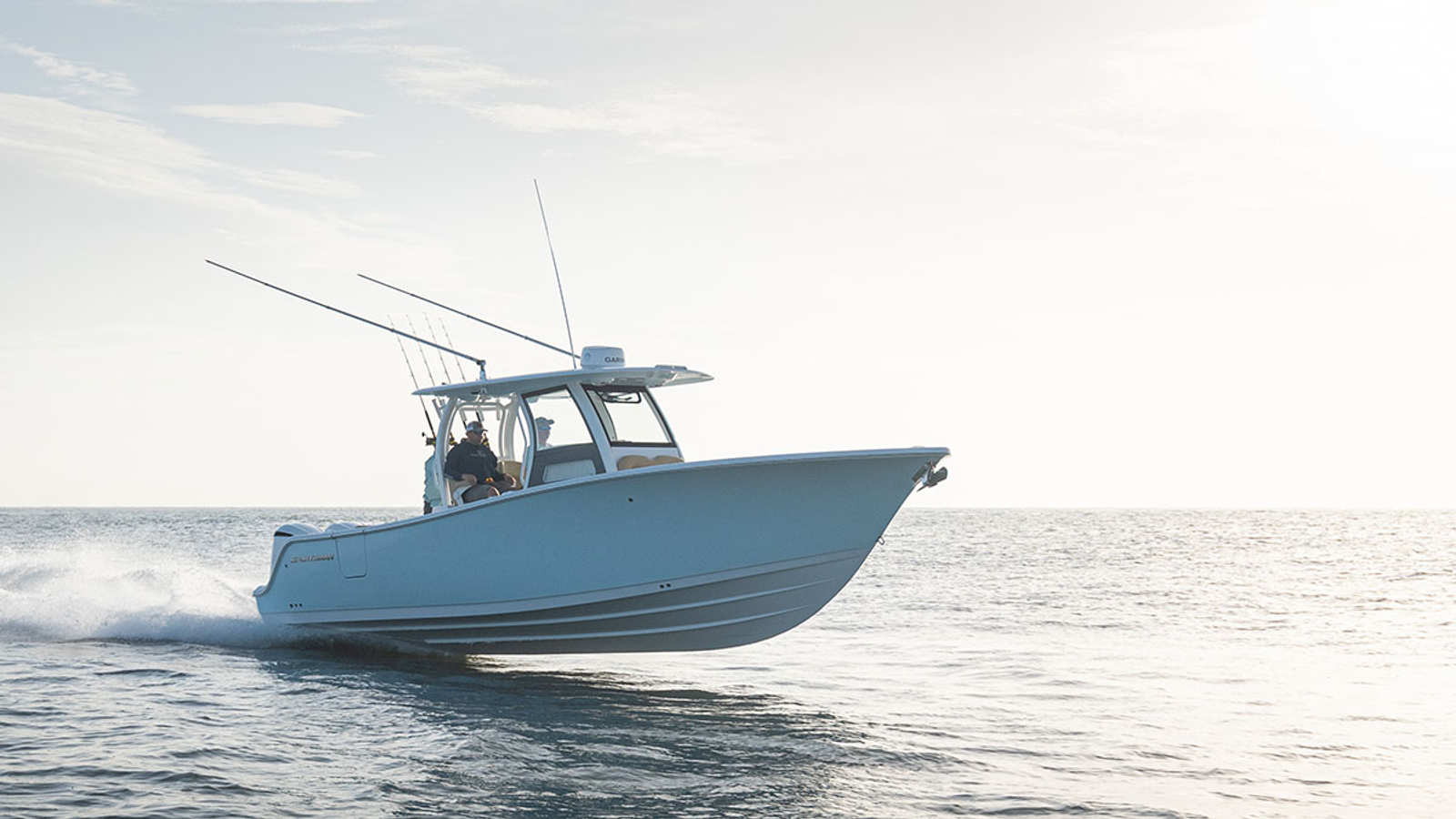 Step aboard the Sportsman Open 302 and discover a host of premium features designed to elevate your boating experience. The fiberglass console, complete with a FG liner and cooler seat, offers durability and convenience, while the fiberglass hard top with integrated LED lighting provides shade and illumination for day and night outings. The hardtop’s underside is finished in Explorer Blue, complementing the hull and adding a touch of sophistication.The powder coating in white gives the boat a clean, modern look, and the Serenity Sileather Icecap White upholstery ensures both comfort and style throughout the vessel. The fiberglass leaning post with a rear-facing seat and sink is perfect for entertaining or prepping for a fishing trip, while the premium 60/40 bench with bolsters offers versatile seating options for guests. Navigation and connectivity are effortless thanks to two Garmin 16" GPS screens with built-in Wi-Fi, putting advanced chart plotting and real-time data at your fingertips.