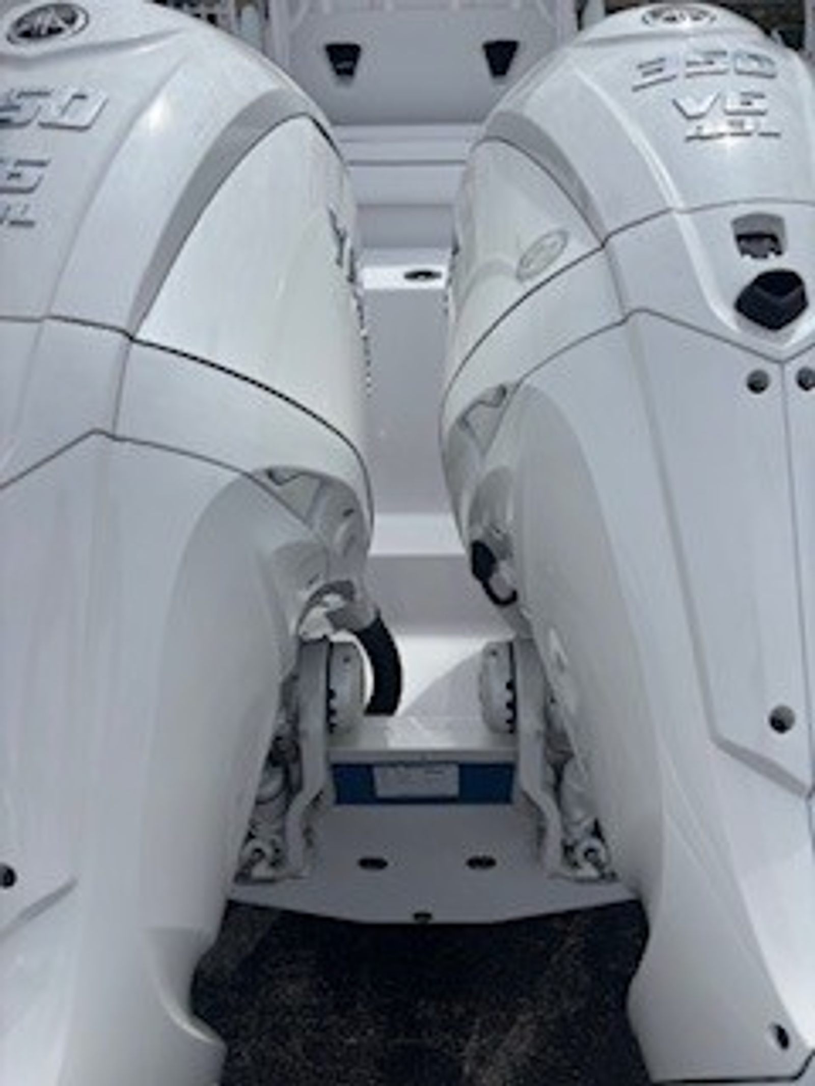 Powering the Open 302 are twin Yamaha F350XSA engines, delivering a combined 700 horsepower for exhilarating speed and reliable performance. These engines are renowned for their smooth operation, fuel efficiency, and robust power, making them perfect for everything from offshore fishing expeditions to leisurely cruises along the coast. The dual-engine setup not only boosts acceleration and top speed but also enhances handling and safety, giving you confidence in a variety of sea conditions.