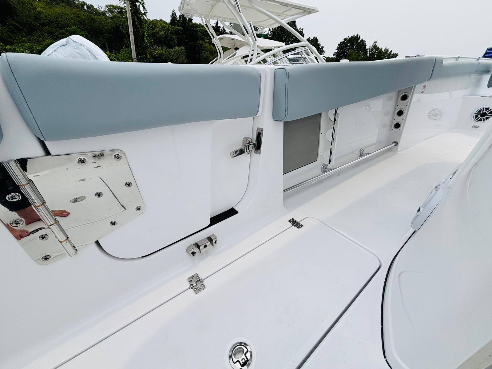 Powering the Sportsman Open 302 are twin Yamaha F350XSA engines, finished in a stunning white that complements the boat’s overall aesthetic. With a combined 700 horsepower, these engines deliver exhilarating speed, smooth acceleration, and reliable performance for all your boating pursuits. Whether you’re cruising along the coastline or heading offshore for a day of fishing, the twin Yamaha engines provide the muscle and efficiency needed for a superior boating experience. The advanced engineering ensures responsive handling, optimal fuel efficiency, and a quiet ride, allowing you to focus on the fun and excitement of the journey.