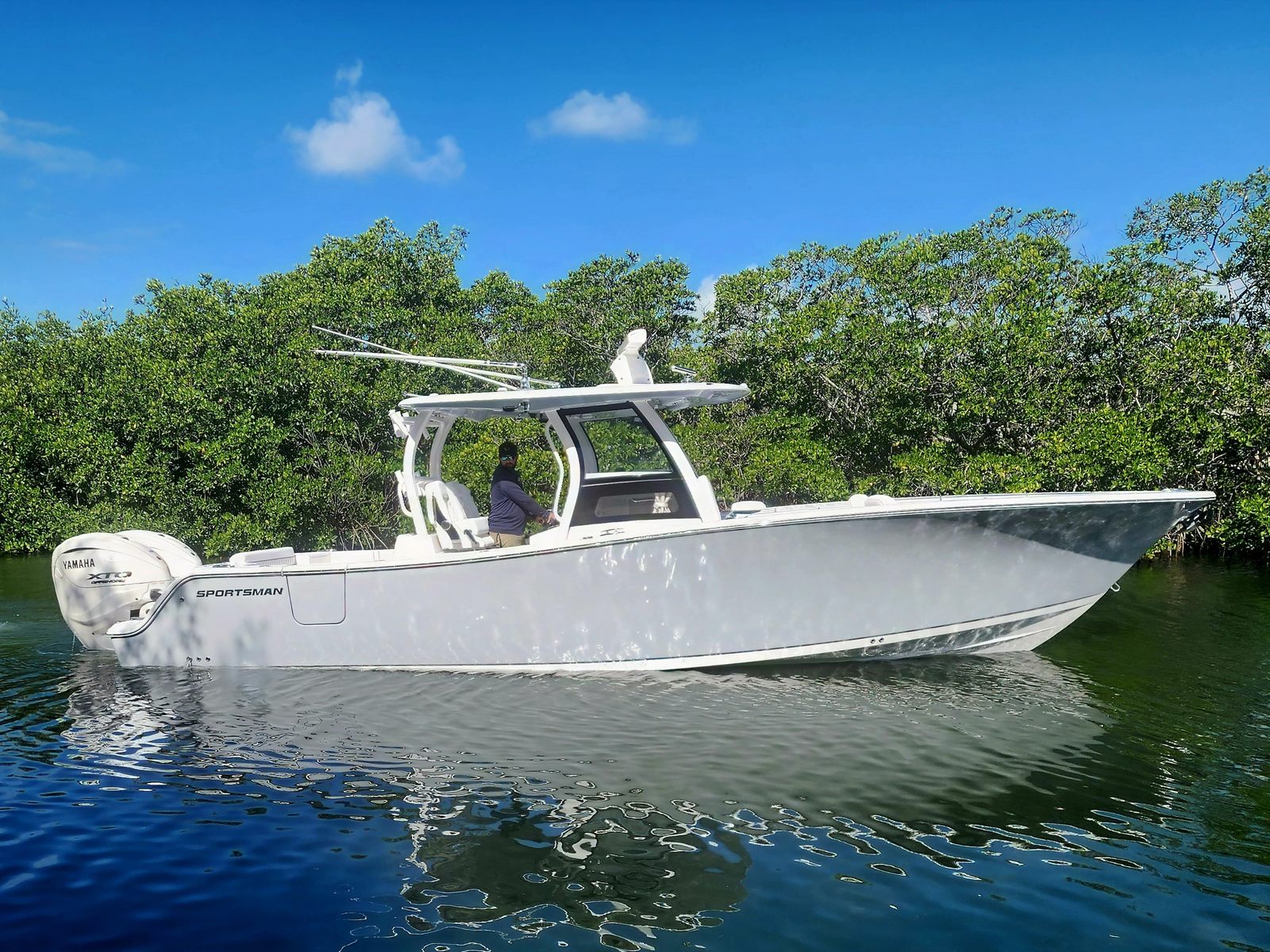 Power and precision are at the heart of the Sportsman Open 322’s design. Equipped with twin Yamaha XF450 engines—available exclusively in white—this Center Console boat boasts a combined 900 horsepower, offering thrilling acceleration and smooth handling in a variety of conditions. The advanced engineering of these Yamaha engines ensures reliable performance, fuel efficiency, and quiet operation, allowing you to enjoy every journey with confidence. Whether you’re navigating choppy waters or gliding across calm bays, the Sportsman Open 322 responds effortlessly to your commands, making it a joy to captain.