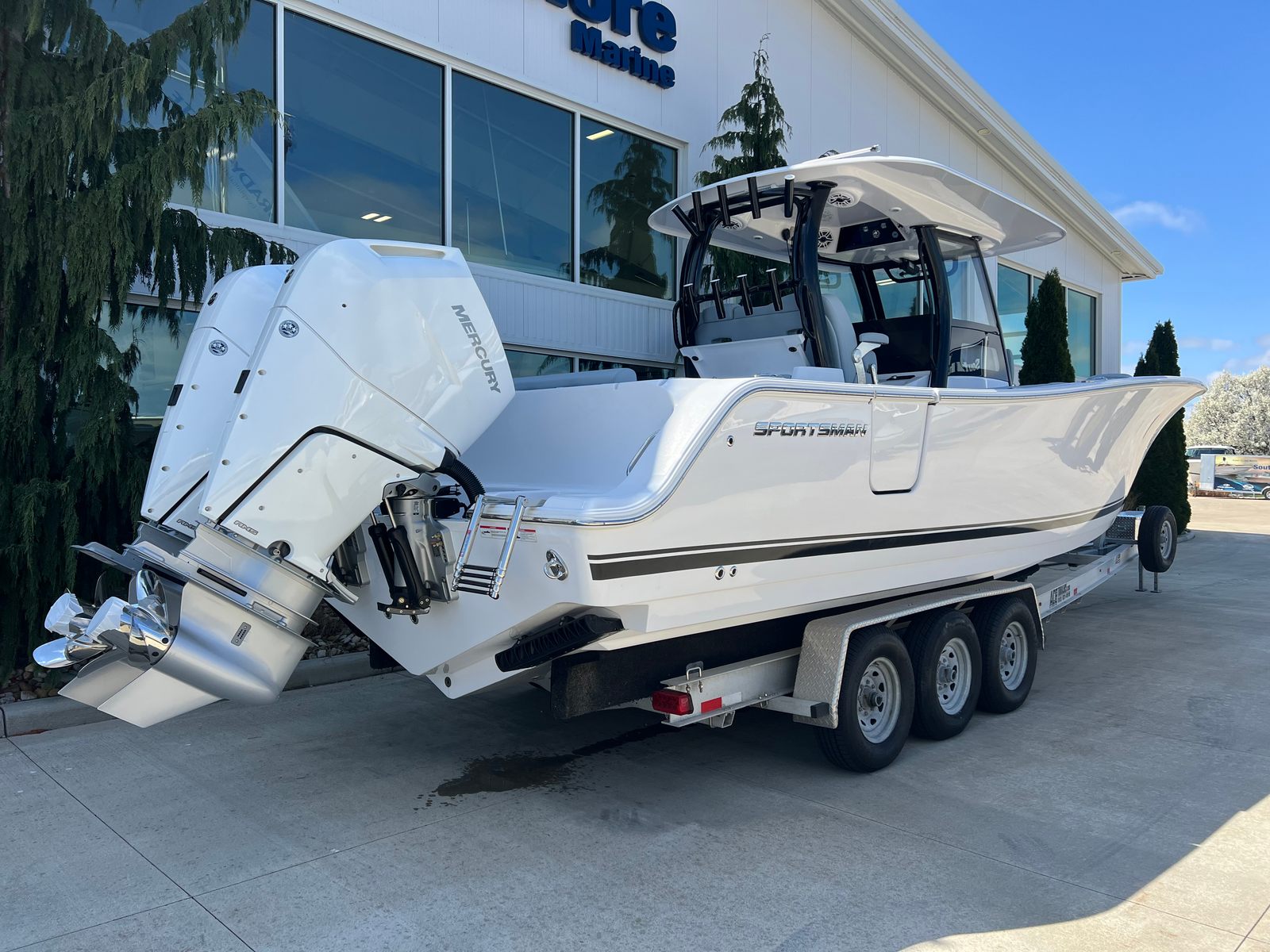 Beyond its impressive looks and performance, the Sportsman Open 322 is designed with practicality in mind. The center console layout maximizes deck space, providing plenty of room for gear, coolers, and water toys. The fiberglass console and hard top offer protection from the elements, while the integrated cooler seat and sink add convenience for long days on the water.Docking and maneuvering are made easier thanks to the responsive twin Mercury engines, and the durable construction ensures peace of mind in a variety of conditions. The boat’s efficient design helps optimize fuel usage, so you can spend more time enjoying the water and less time at the pump. Whether you are heading out for a quick afternoon cruise or planning a weekend getaway, the Open 322 adapts to your needs with ease.