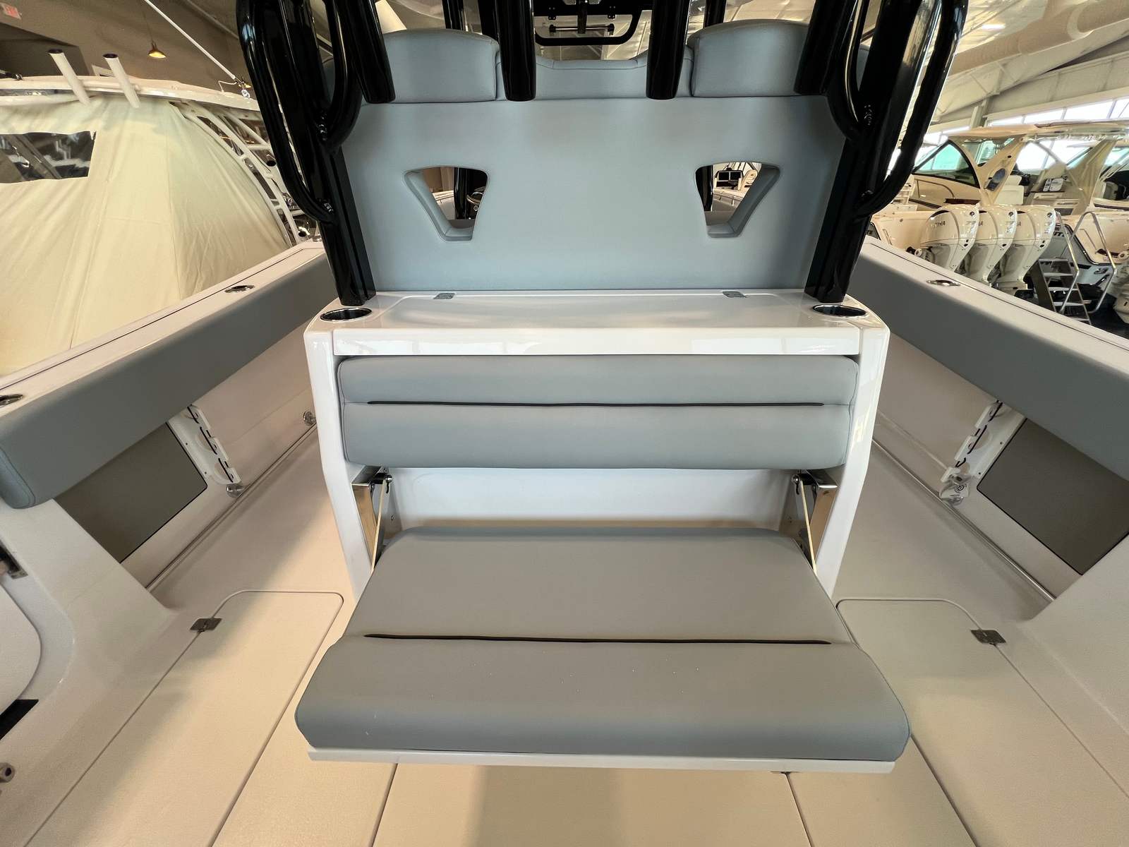 Step aboard the Sportsman Open 322 and discover a world of premium features designed for both comfort and convenience. The hull and bottom are finished in a striking white, complemented by a fiberglass console with an FG liner and a cooler seat for added functionality. The fiberglass hard top with integrated LED lighting not only provides shade and protection but also enhances the boat’s modern aesthetic. The hardtop underside is color-matched in white, creating a seamless and sophisticated look.Attention to detail is evident throughout, with black powder coating on metalwork for a bold, stylish contrast. The Serenity Sileather Smoky Gray upholstery offers a plush, durable seating experience that is both comfortable and easy to maintain. The fiberglass leaning post features a rear-facing seat and a convenient sink, perfect for preparing snacks or cleaning up after a day on the water. The premium 60/40 bench with bolsters ensures that everyone on board enjoys ergonomic support and relaxation, whether you are cruising or anchored at your favorite spot.For navigation and entertainment, the Sportsman Open 322 is equipped with two Garmin 16-inch GPS screens featuring built-in Wi-Fi. These state-of-the-art displays provide intuitive control, real-time navigation, and seamless connectivity, keeping you informed and in command wherever your adventures take you.