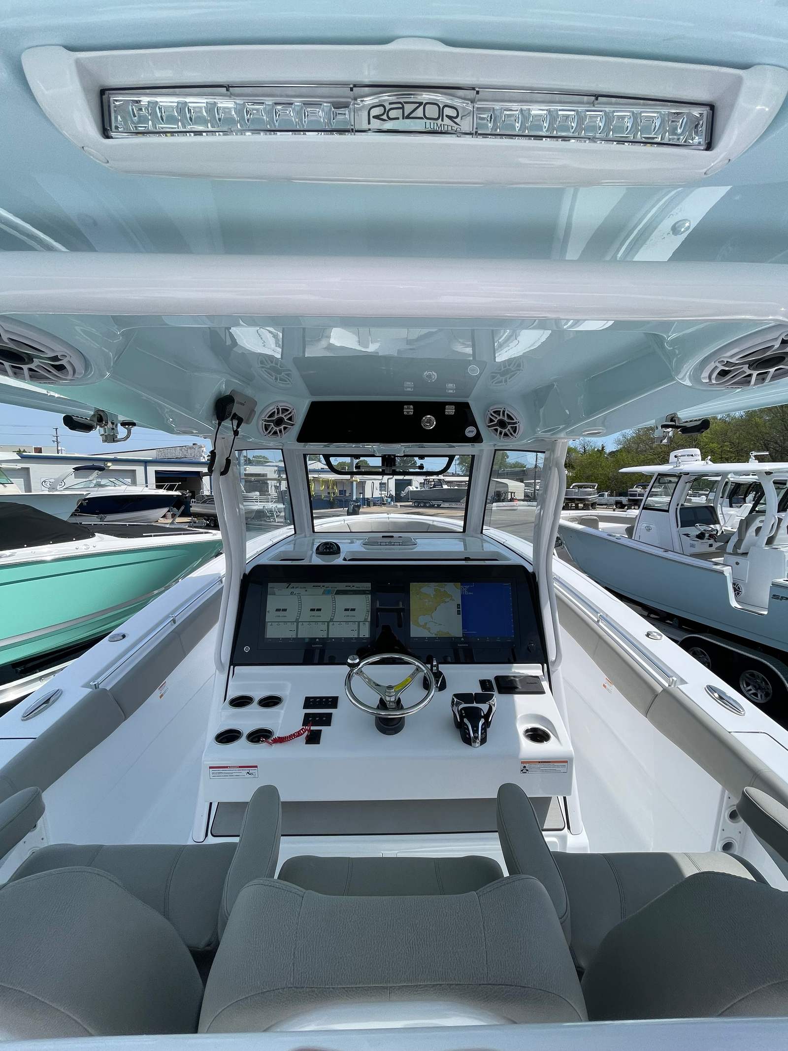 Power and precision are at the heart of the Open 352’s appeal. Equipped with triple Yamaha F350XSA engines, each finished in a pristine white, this center console boasts a combined 1,050 horsepower. The result is exhilarating speed, smooth acceleration, and the confidence to tackle offshore conditions with ease. The Yamaha Auto Pilot system enhances navigation, allowing for effortless course adjustments and stress-free cruising, whether you’re heading to a favorite fishing spot or exploring new waters. The Seakeeper 3 Gyroscopic Stabilizer further elevates the ride, minimizing roll and ensuring stability even in choppy seas. With this level of performance, the Open 352 is engineered to deliver both excitement and peace of mind.